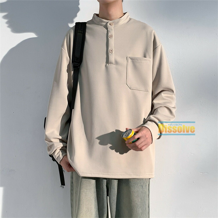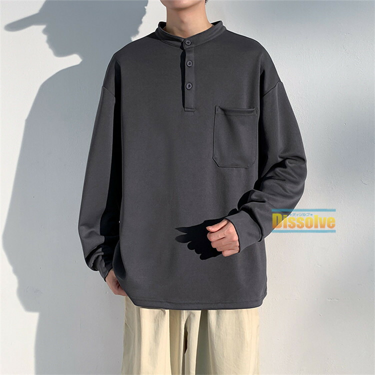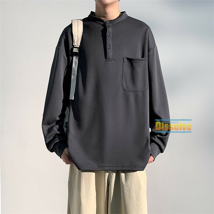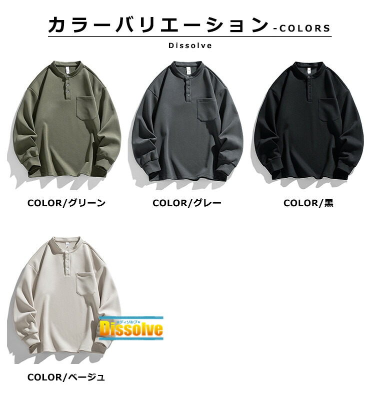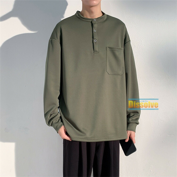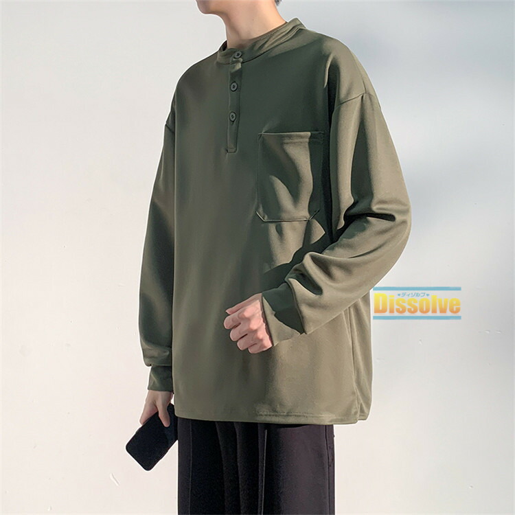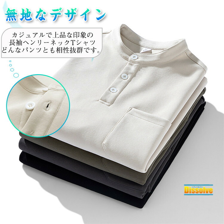 ヘンリーネックTシャツ 長袖Tシャツ メンズファッション 人気 M L XL 2XL 3XL グリーン グレー 黒 ベージュ
