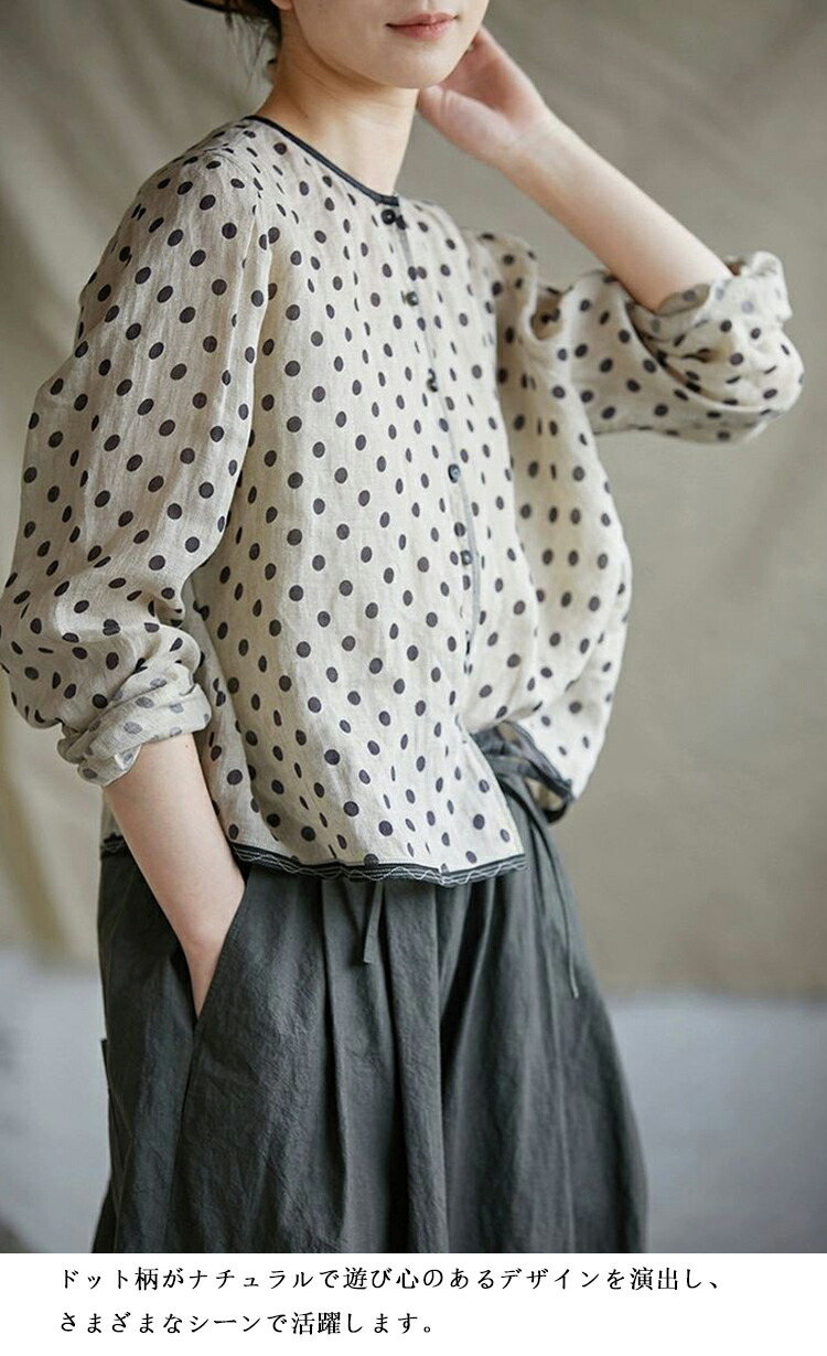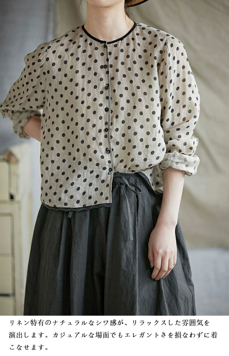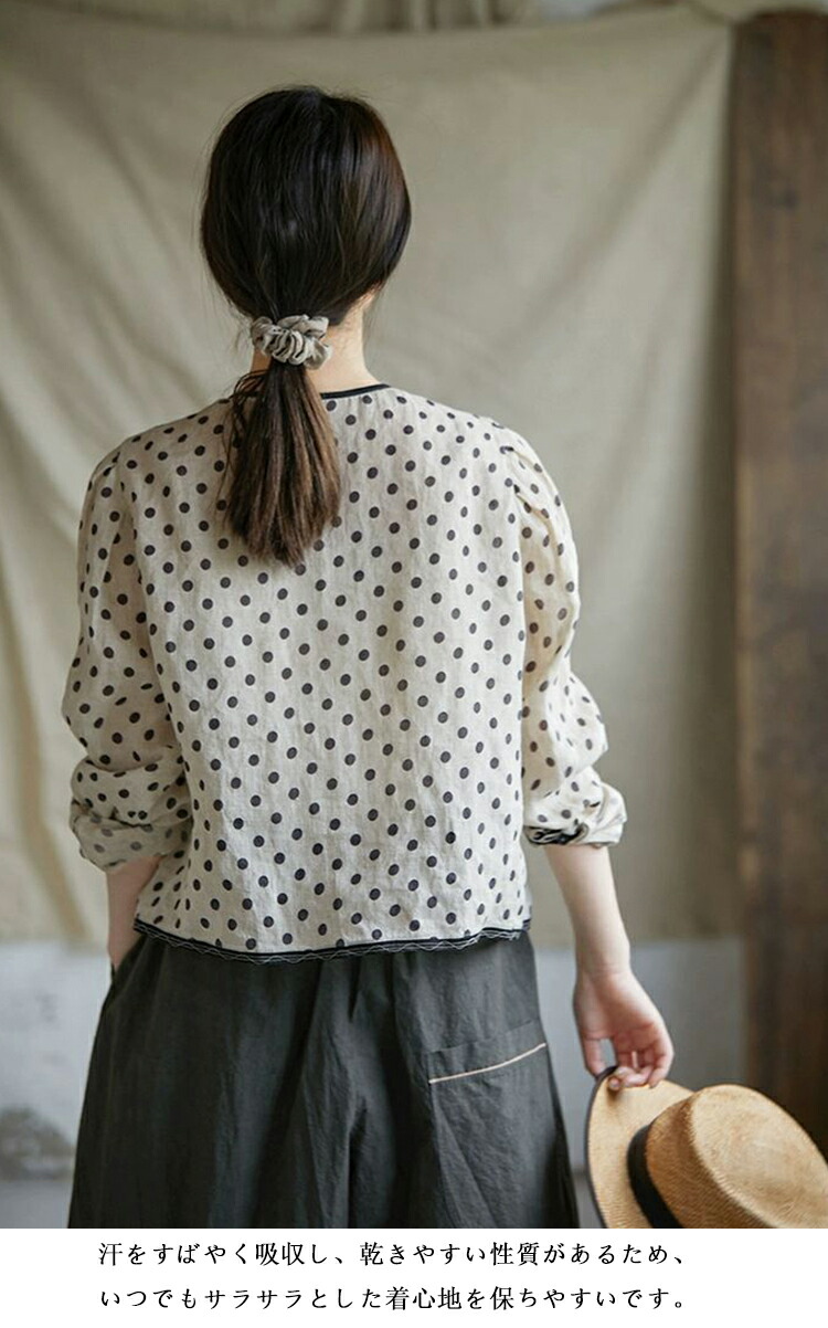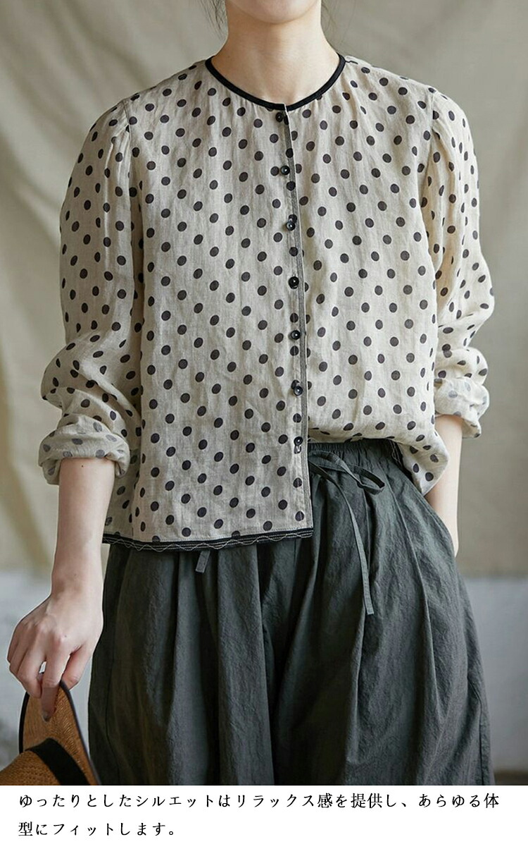 リネンシャツ 水玉柄 長袖シャツ レデ トップス シャツ ブラウス 続々登場 S M L XL