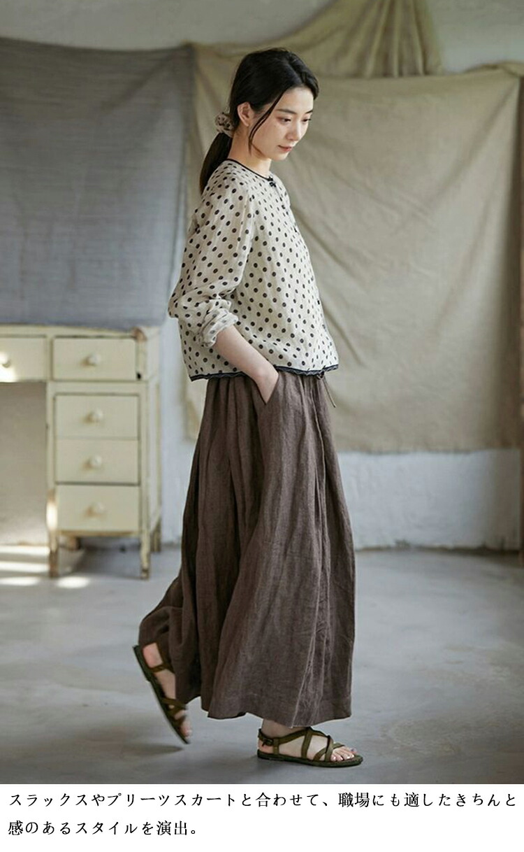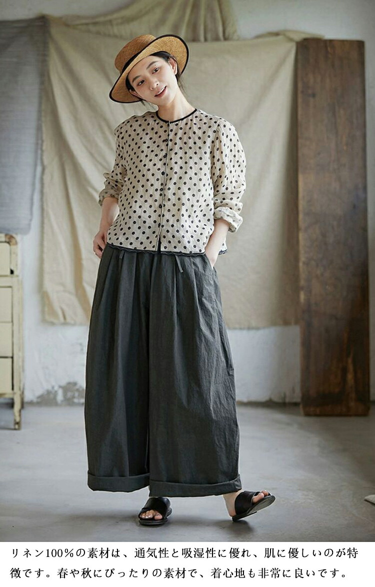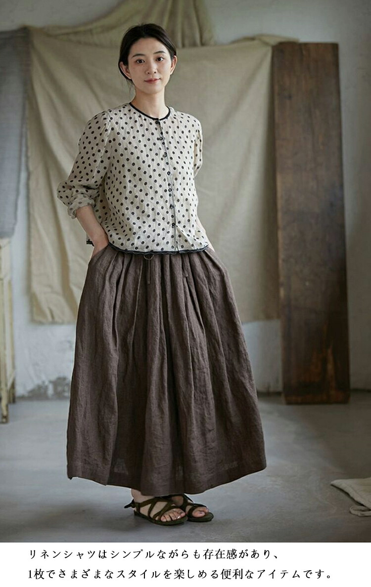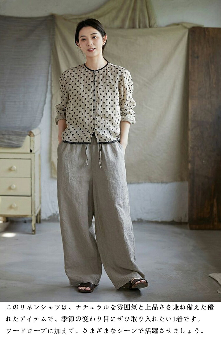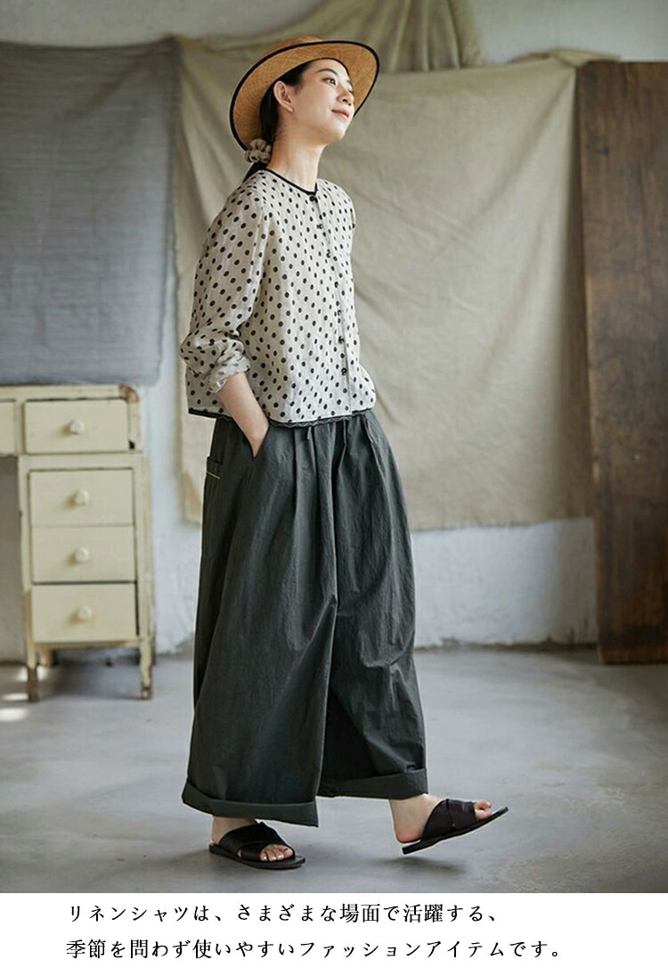 リネンシャツ 水玉柄 長袖シャツ レデ トップス シャツ ブラウス 続々登場 S M L XL