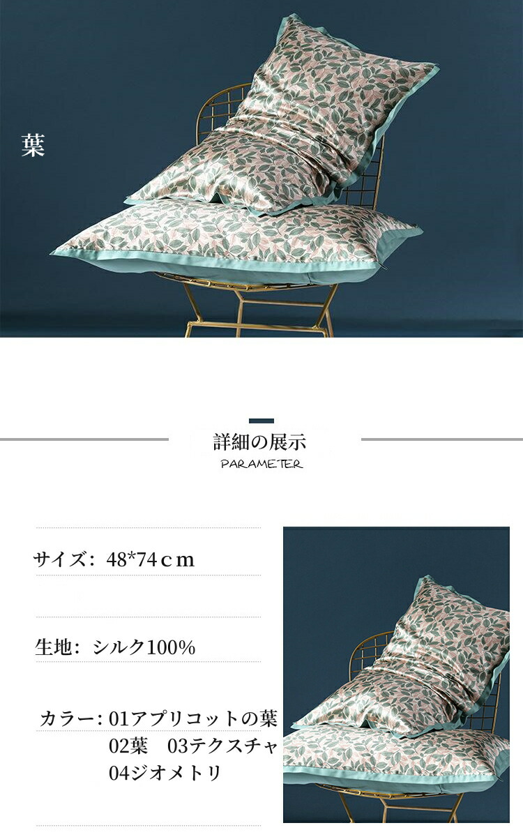 シルク 枕カバー 16匁 48*74c インテリア 寝具 収納 早い者勝ち アプリコットの葉 葉 テクスチャ 蝶 ジオメトリ