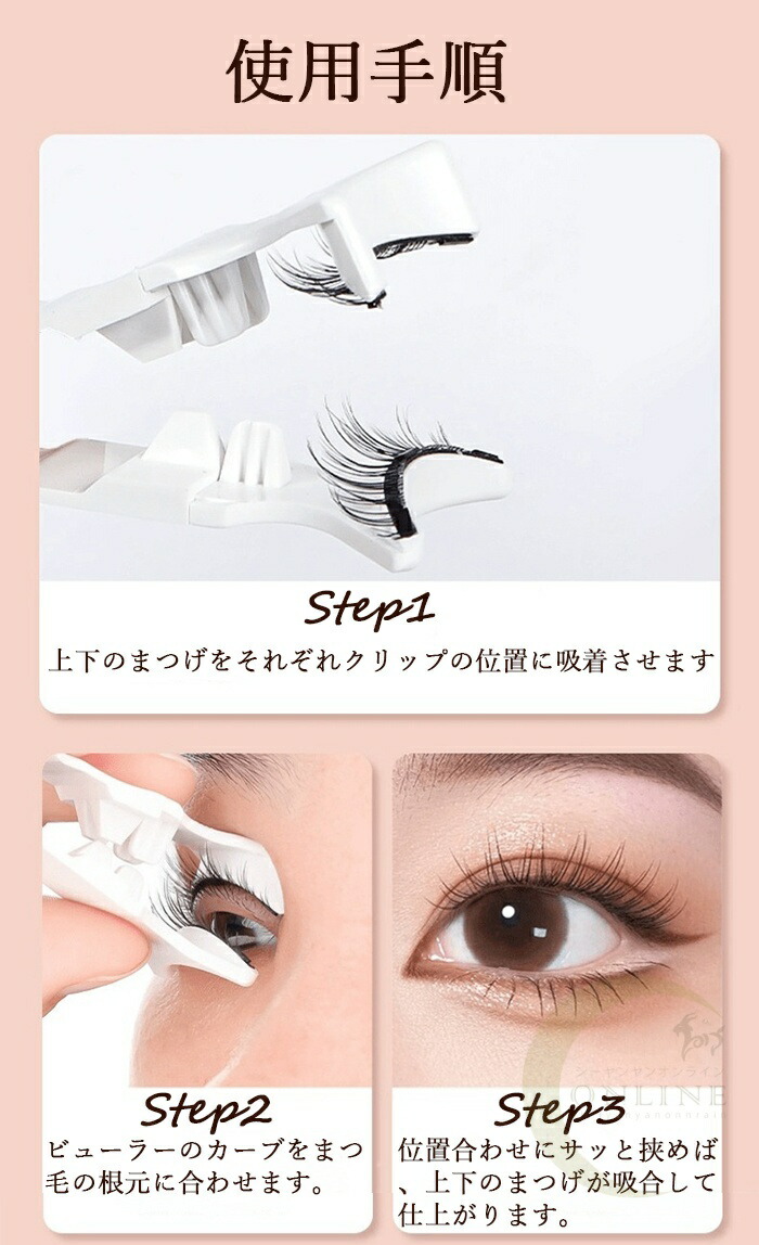 1、上下のまつげをそれぞれクリップの位置に吸着させます