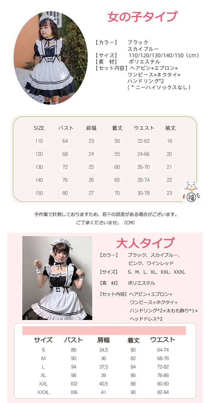 ハロウィン メイド キッズ コスプレ ホビー 新登場! ブラック-大人 スカイブルー-大人 ピンク-大人 ブラック-女の子 スカイブルー-女の子 110cm 120cm 130cm 140cm 150cm S M L XL XXL