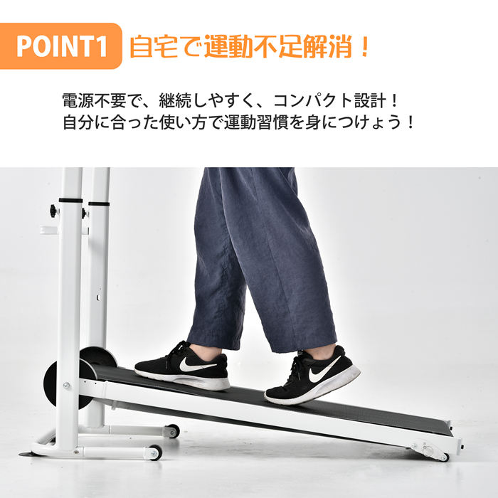 ウォーキングだけで効果が期待できる「自走式ルームランナー」は、運動不足解消や体力維持はもちろん、体幹も鍛える。