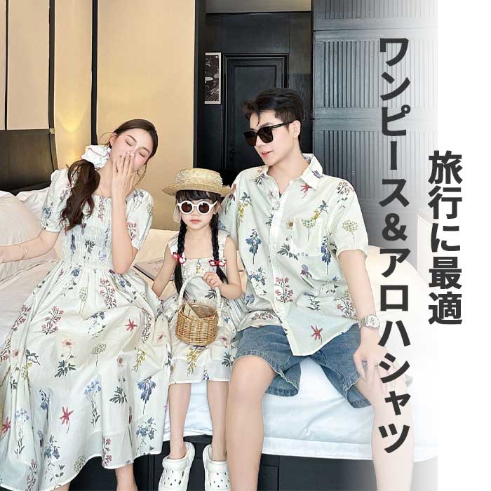 親子ペアルック アロハシャツ 花柄 夏 女の子ワンピース ママワンピース 男の子シャツ パパシャツ ベビーロンパース 66cm 73cm 80cm 90cm 100cm 110cm 120cm 130cm 140cm 150cm S M L XL 2XL 3XL 4XL