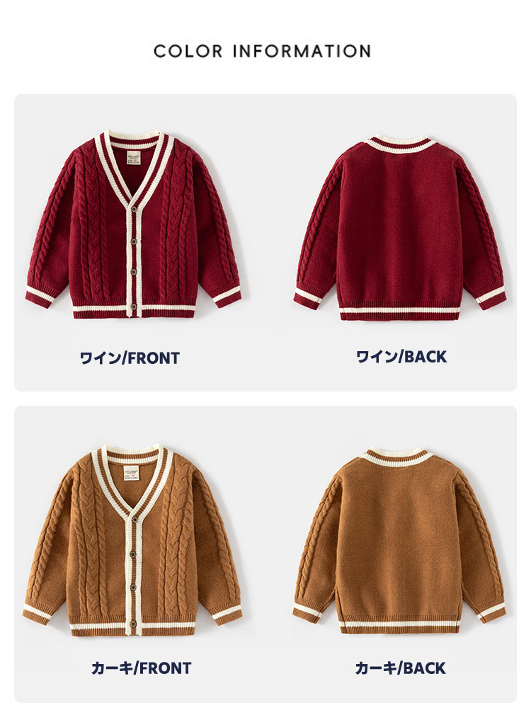 ニットセーター キッズ 男の子 女の子 キッズ トップス カーディガン ボレロ 人気 ワイン カーキ ネイビー グレー 90cm 100cm 110cm 120cm 130cm