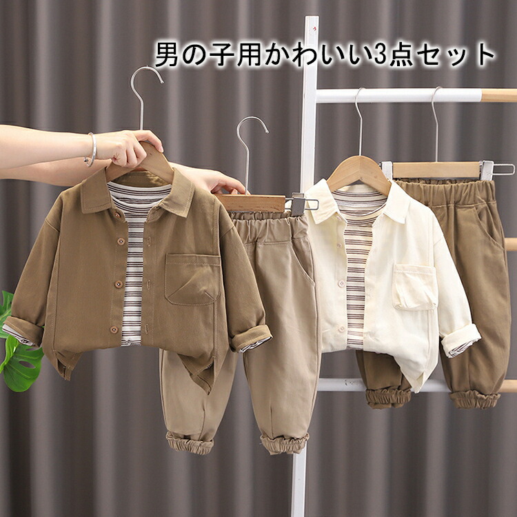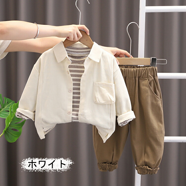 キッズファッション 男の子 春秋 セッ キッズ ベビー マタニティ 続々登場 ホワイト カーキ 80cm 90cm 100cm 110cm 120cm