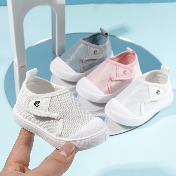 ベビー 上履き メッシュ シューズ 女 キッズ 靴 スニーカー 豊富 ホワイト グレー ピンク 【4/18#】内寸12cm 【5/19#】内寸12.6cm 【6/20#】内寸13.3cm 【6.5/21#】内寸14cm 【7/22#】内寸14.7cm 【8/23#】内寸15.3cm