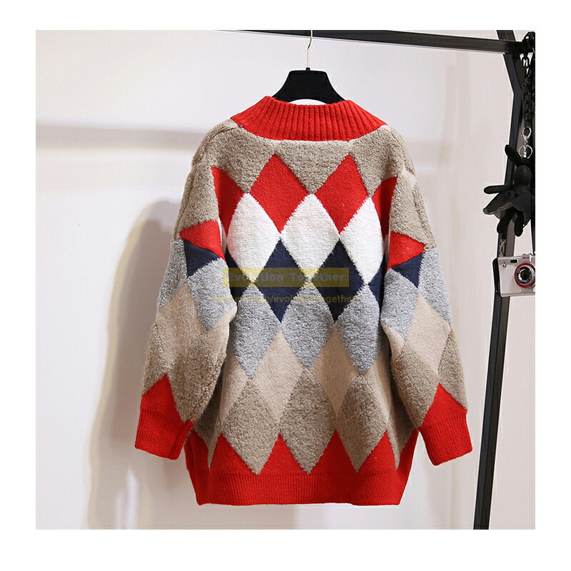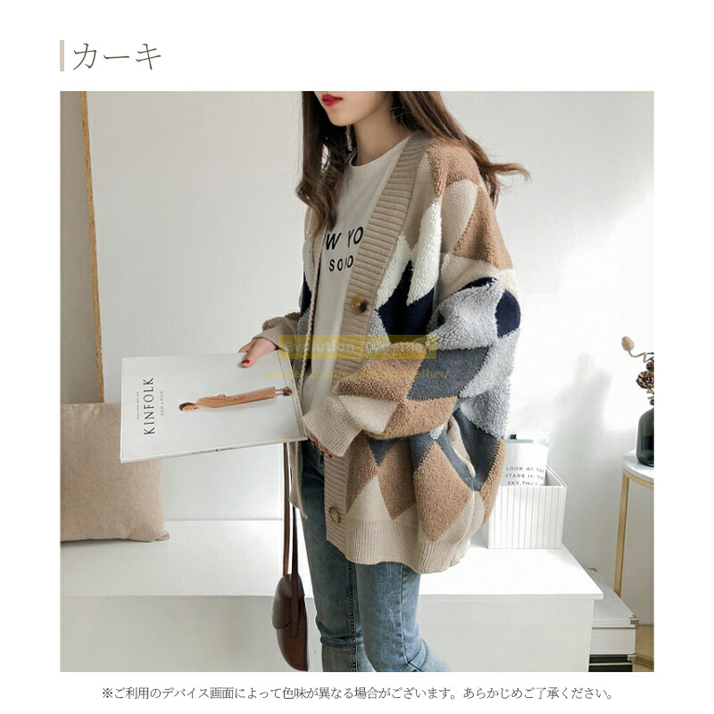 チェック カーディガン レディース 冬 レディースファッション 早い者勝ち レッド カーキ ネイビー