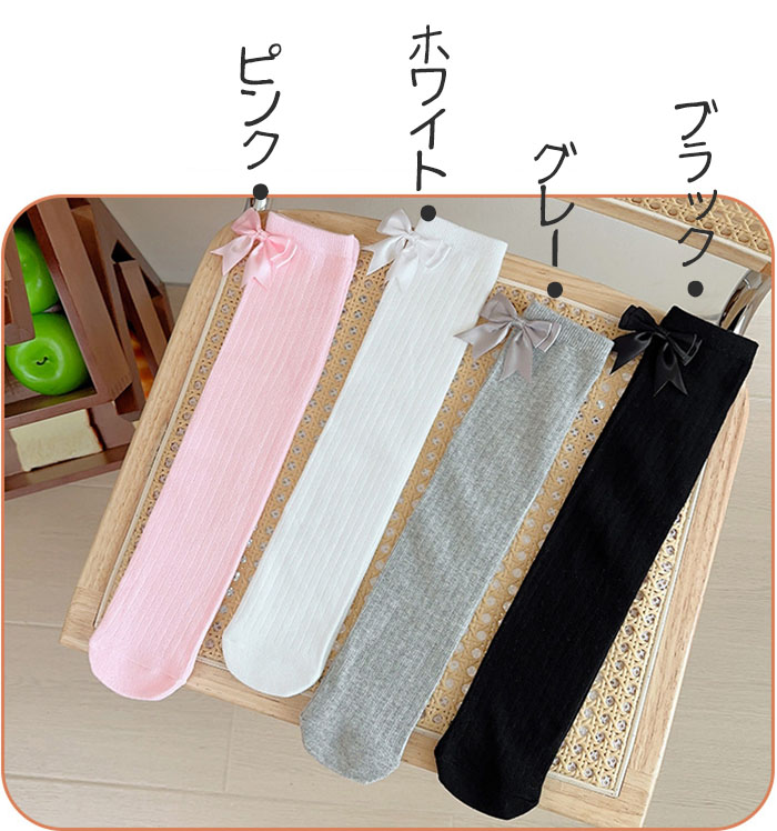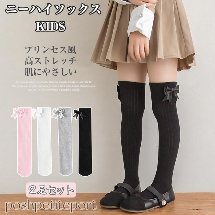靴下 キッズ 2足セット ニーハイソッ バッグ 小物 ブランド雑貨 人気 ホワイト ピンク グレー ブラック