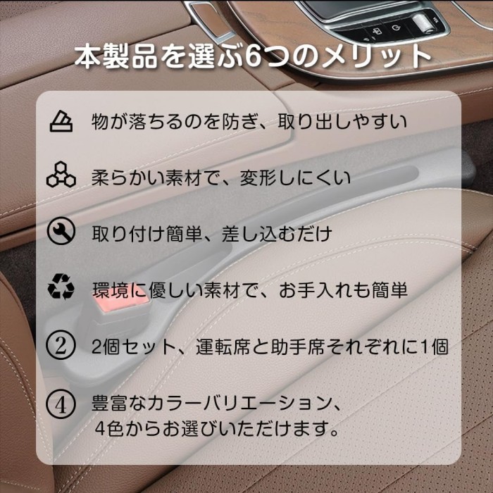 隙間収納 車用 シート隙間 クッション ブラック ベージュ ブラウン レッド