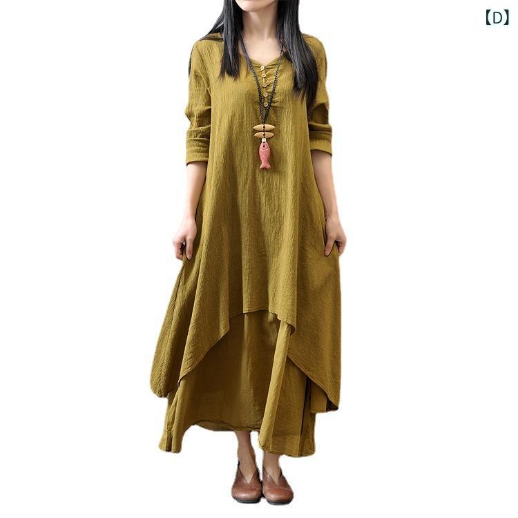 ロングスカート 綿混素材 亜麻 新型の レディースファッション 人気 A:ホワイト B:黒 C:レンガ赤 D:ウコンイエロー E:ワインレッド M L XL 2XL 3XL 4XL 5XL