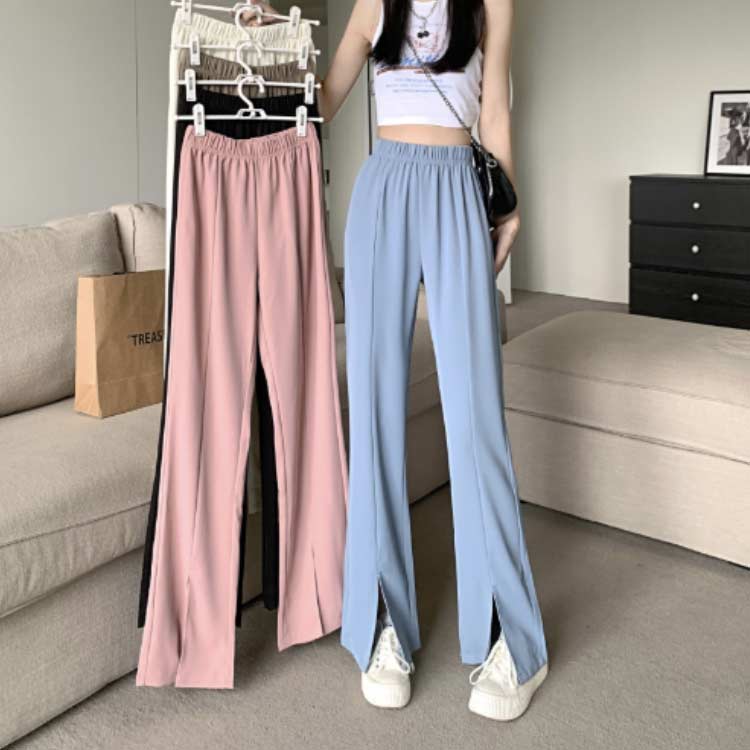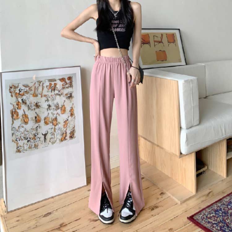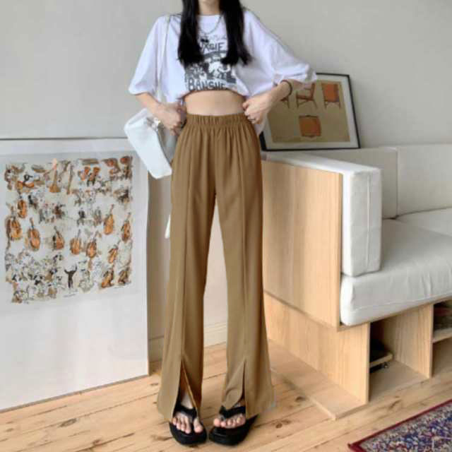 センタースリット パンツ ウエストゴム ボトムス パンツ 続々登場 ブラック ピンク ブルー ブラウン ベージュ S M L XL 2XL