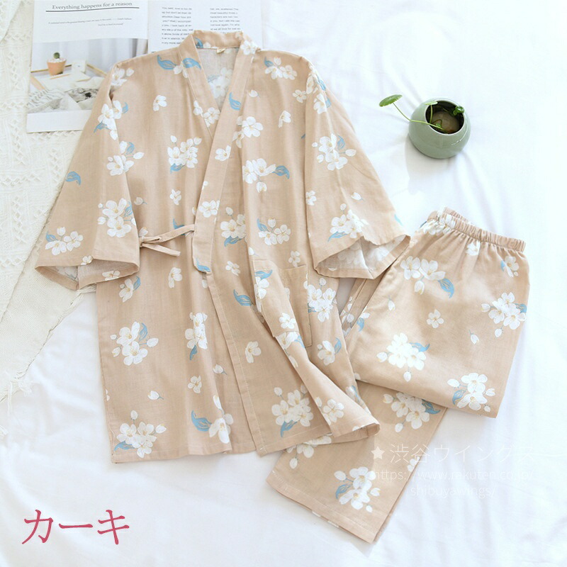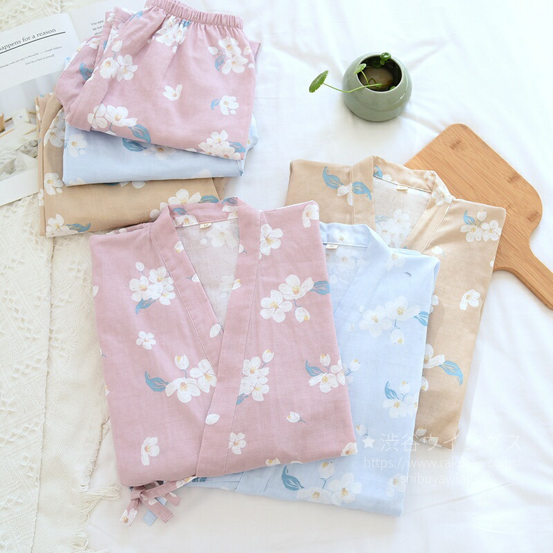 パジャマ ガーゼ 和風 花柄 レディー レディース ナイトウェア ルームウェア パジャマ 新登場! ピンク ブルー カーキ M L XL