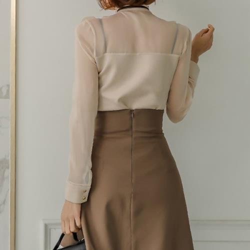 シアースリーブ ドッキングシャツ ボウタイシャツブラウス