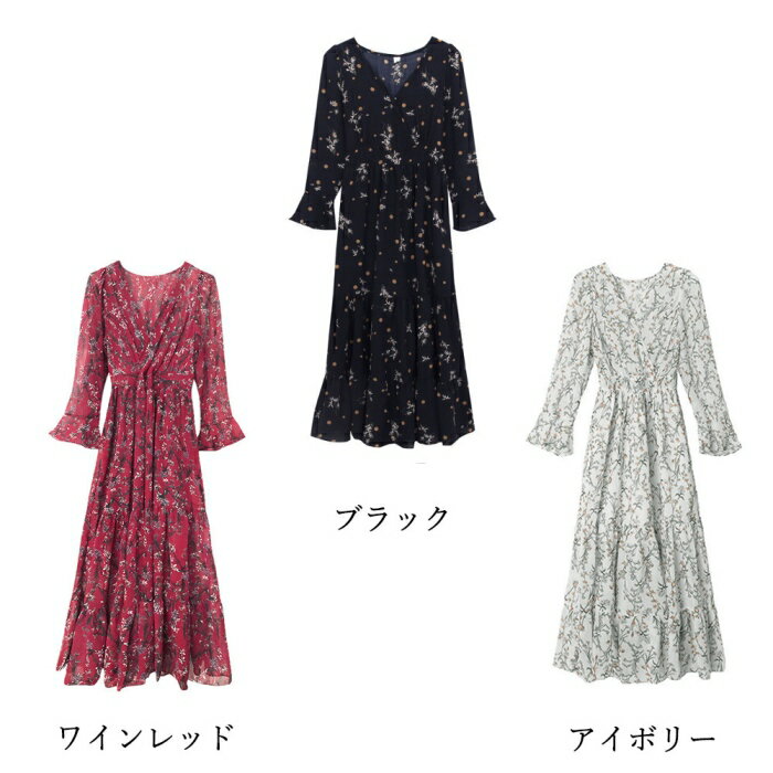ワンピース 春 きれいめ 春コーデ 春ワンピ カジュアル 韓国ファッション L M ワンピース 長袖 ガーリーコーデ カシュクール ティアード 花柄 ロング 結婚式 ドレス ぽっちゃり 大人カジュアル フラワーワンピース Vネック フレアスリーブ 黒 アイボリー ワインレッド レディース 春秋夏 花柄カシュクールワンピ 韓国風Vネック オルチャン フレアワンピース Aライン ハイウエストきれいめ フラワーワンピース 体型カバーシフォン リゾート風 可愛い