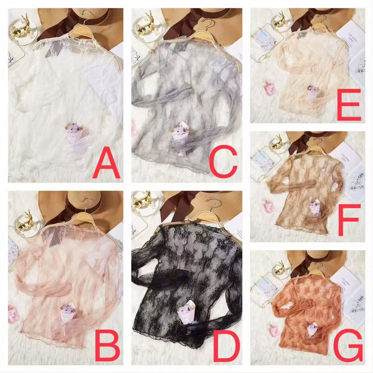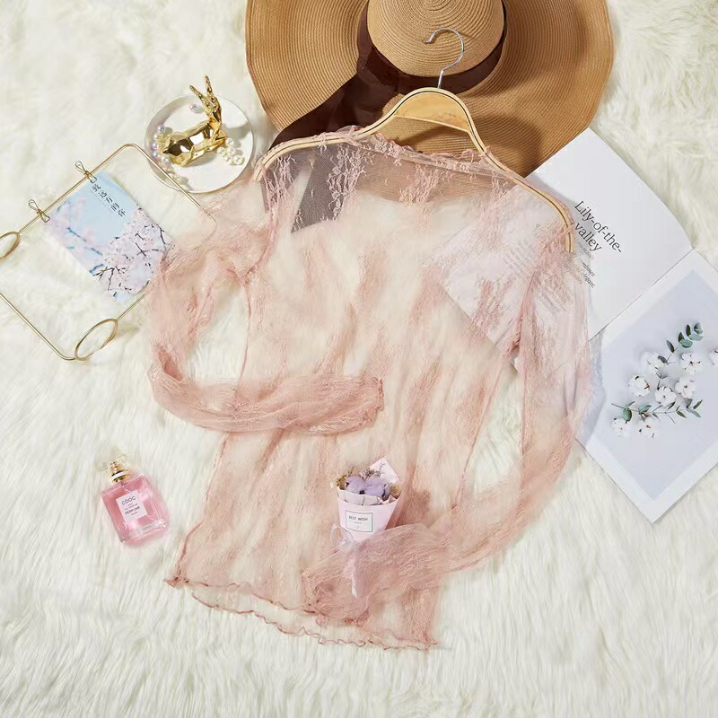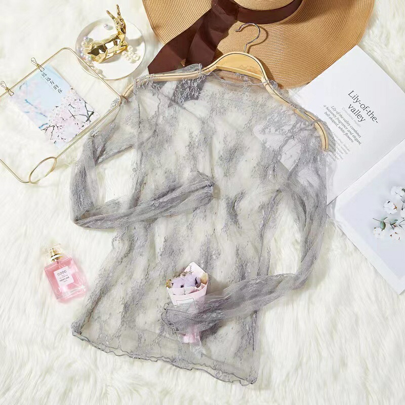 シアートップス カットソー レディース シースルートップス 長袖 チュールトップス トップス インナー レイヤード 薄手 透け レースインナー長袖 重ね着 フリル シースルー イン ハイネックインナー