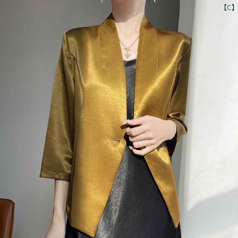 ジャケット レディース 春夏 七分袖 スーツ セットアップ スカートスーツ 豊富な品揃え A:白 B:シャンパン C:ゴールド D:黒 M L XL XXL XXXL XXXXL