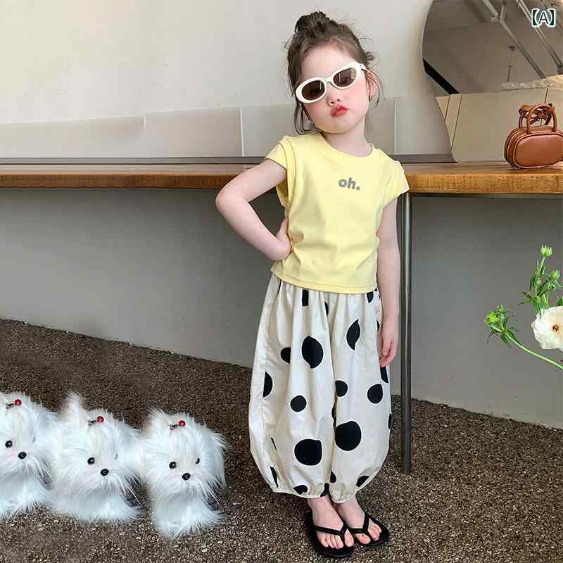 女の子 夏 半袖 ドット セット ガール スタイリッシュ 防蚊 ファッション ツーピース おしゃれ 子供服 パンツ