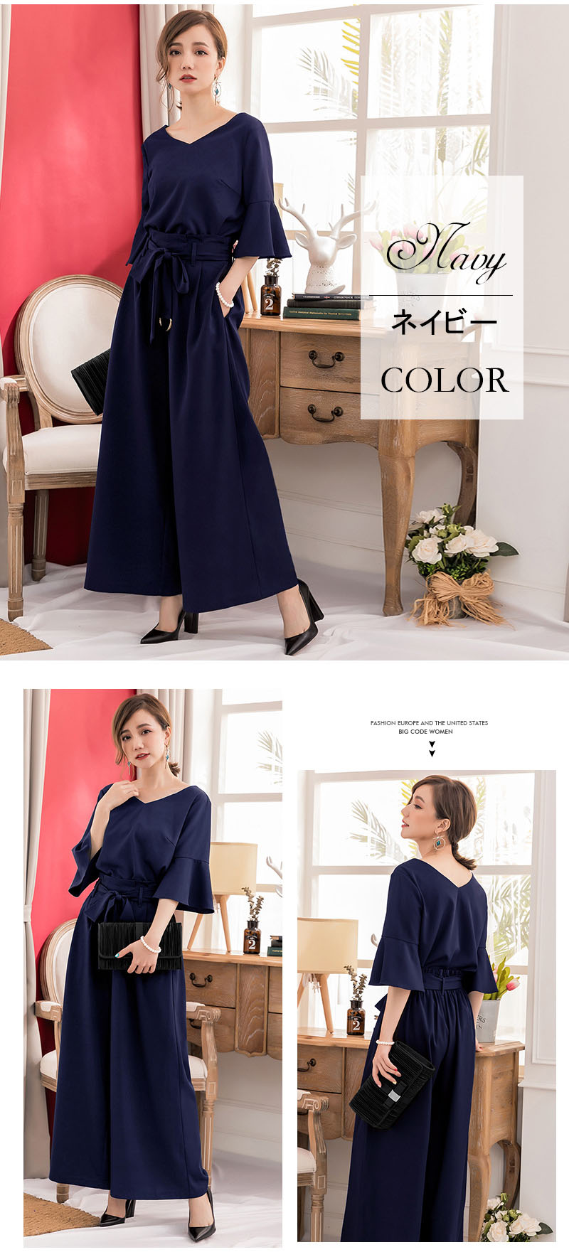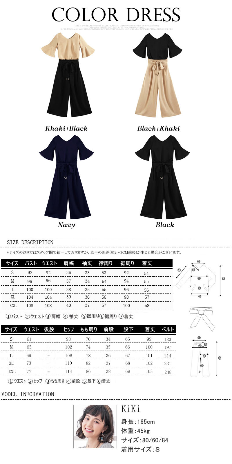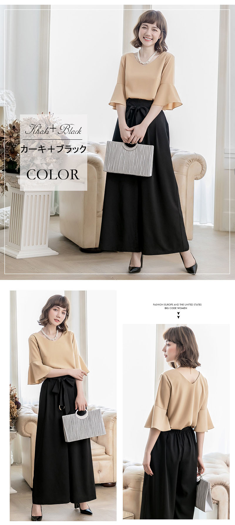 パンツスーツ パンツドレス 入学式 マ レディースファッション 通販 ネイビー ブラック カーキ+ブラック ブラック+カーキ S M L XL XXL