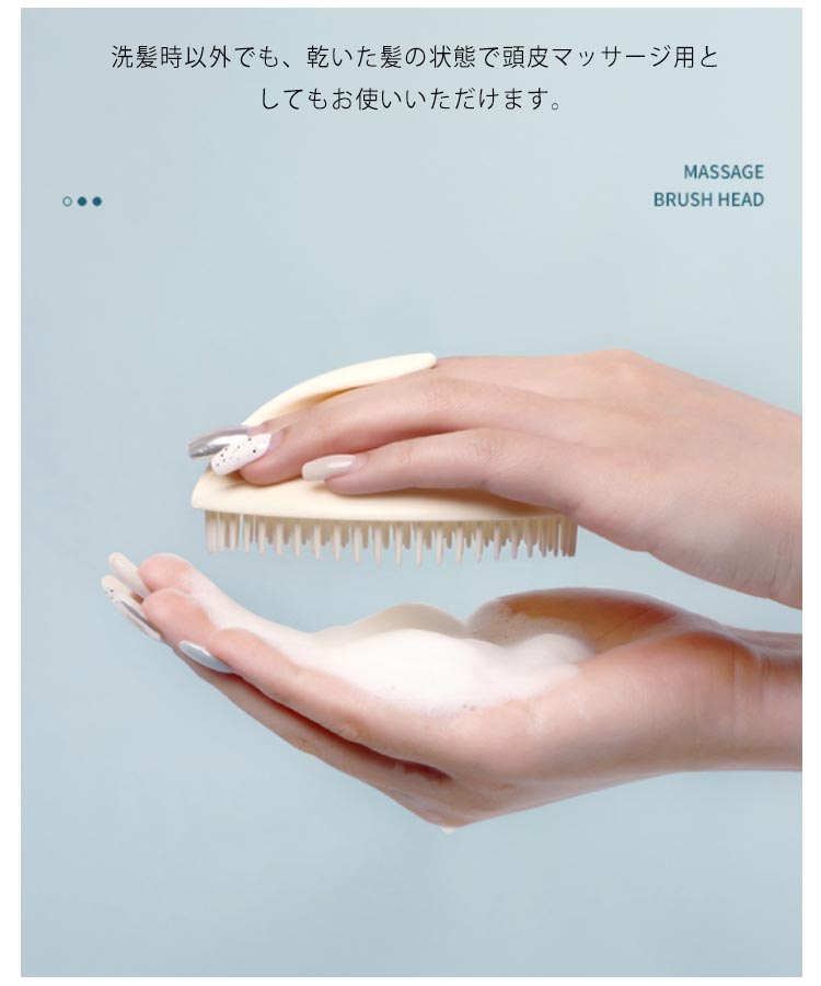 洗髪時以外でも、乾いた髪の状態で頭皮マッサージ用としてもお使いいただけます。