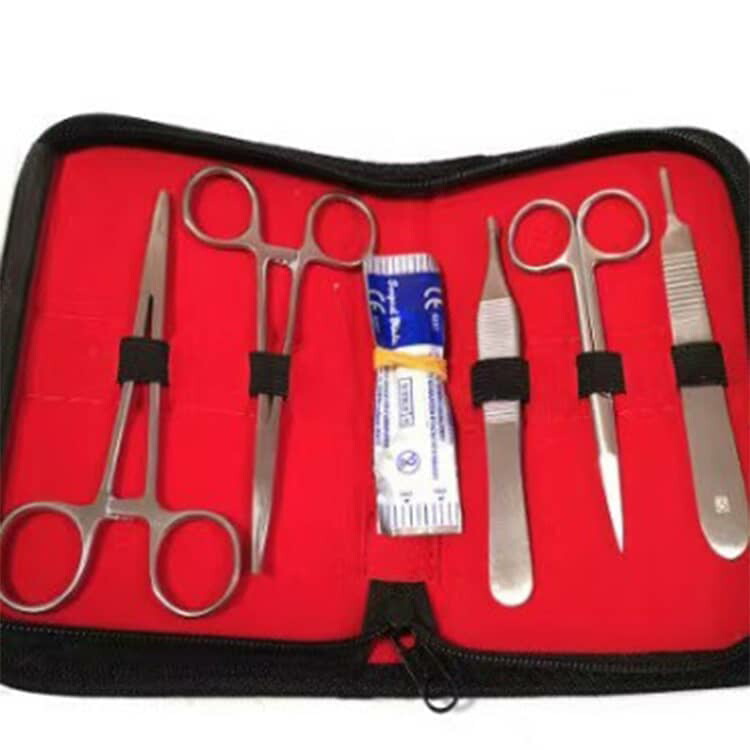【セット内容】縫合練習用パッド ×1枚専用収納ケース ×1個止血鉗子×1本手術用ハサミ ×1本持針器×1本メスホルダーナイフハンドル) ×1本組織鑷子 ×1本縫合糸×5パック替刃×5枚ラテックス手袋 ×1組(2枚)