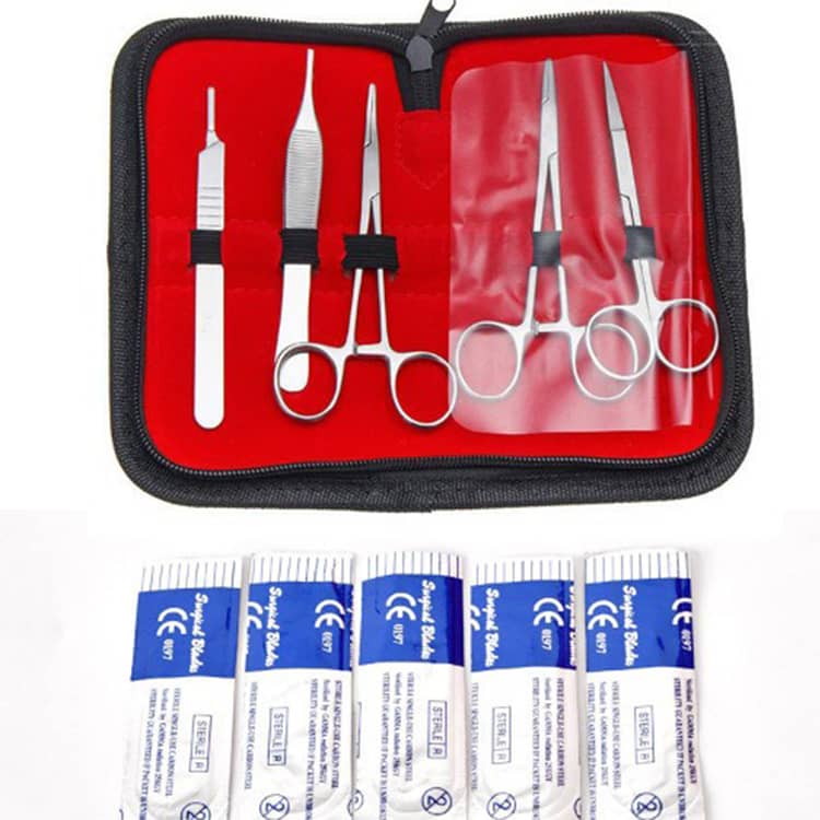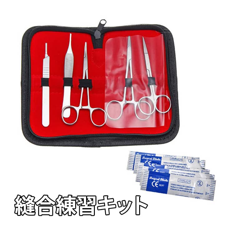 縫合練習キット 組織鑷子 人工皮膚 練習用 止血鉗子 持針器 練習用パッド 縫合糸 手袋付 メスホルダー 医学生 研修医 自宅学習 看護学生 教材 縫合トレーニング 裁縫 スキル 替刃