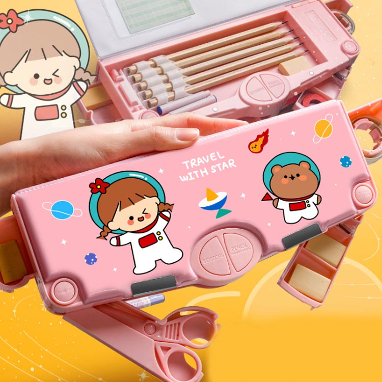 鉛筆削り付き 筆箱 ペンケース 両面開 文房具 事務用品 筆記具 ペンケース 特集 カラー1 カラー2 カラー3 カラー4 カラー5