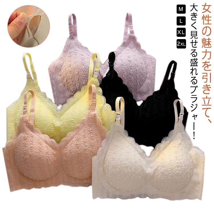 美胸 ブラジャー 胸を大きく見せるブラ レディース インナー 下着 ブラジャー 人気 ブラック ベージュ ライラック ブラウン イエロー M L XL 2XL