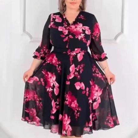 レディース ビッグサイズ Vネック 花 スーツ セットアップ ワンピーススーツ 続々登場 A:赤9169 B:紺9169 S M L XL XXL XXXL 4XL 5XL