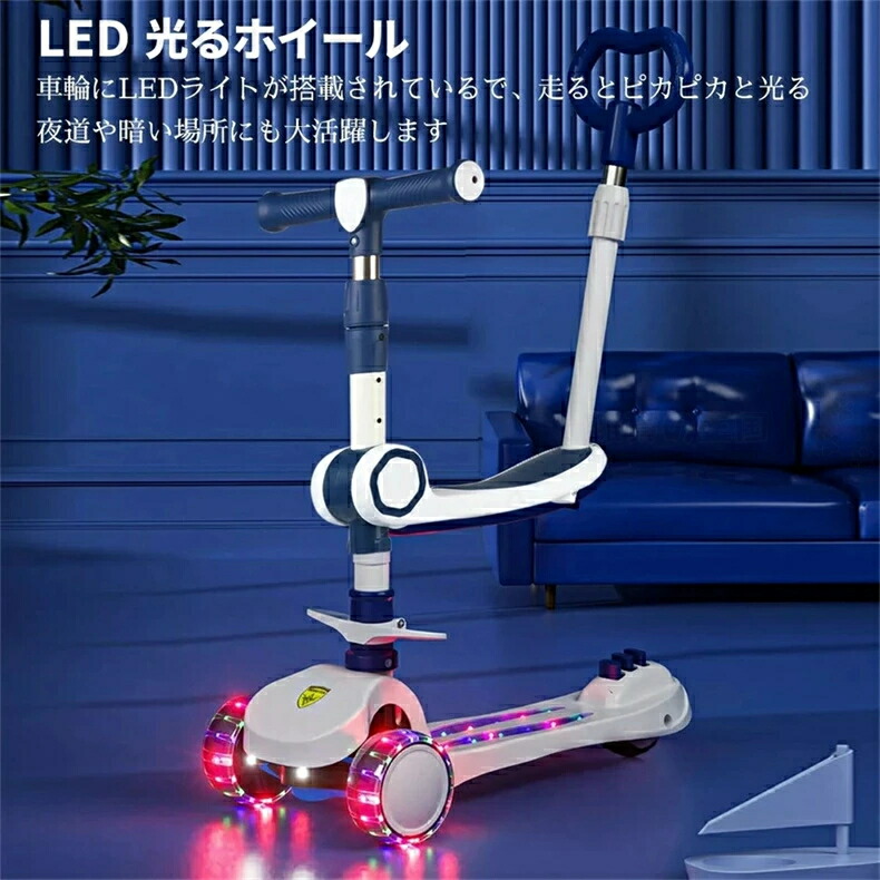 キックボード 子供 3輪 キックスケーター 子供用 キックスクーター ブレーキ付 光るタイヤ 3in1 組み立て不要 光る 軽量 三輪キックスケーター 完成品