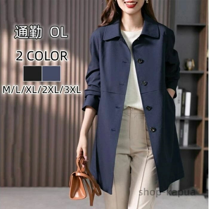 トレンチコート レディース ステンカラ コート ジャケット 豊富な品揃え ブラック ネイビー M L XL 2XL 3XL
