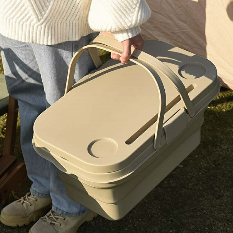 折り畳みかご 折り畳みバスケット プラ アイボリー カーキ
