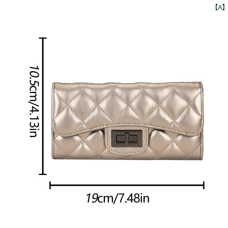 長財布 レディース ウォレット 小銭入れ コンパクト 韓国 キルティング レトロ 折りたたみ カード シルバー ピンク ブルー コイン