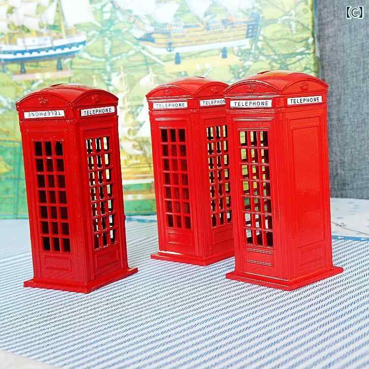 貯金箱 イギリス風 ブリティッシュスタ A:13cm赤 B:15cm赤 C:18cm赤