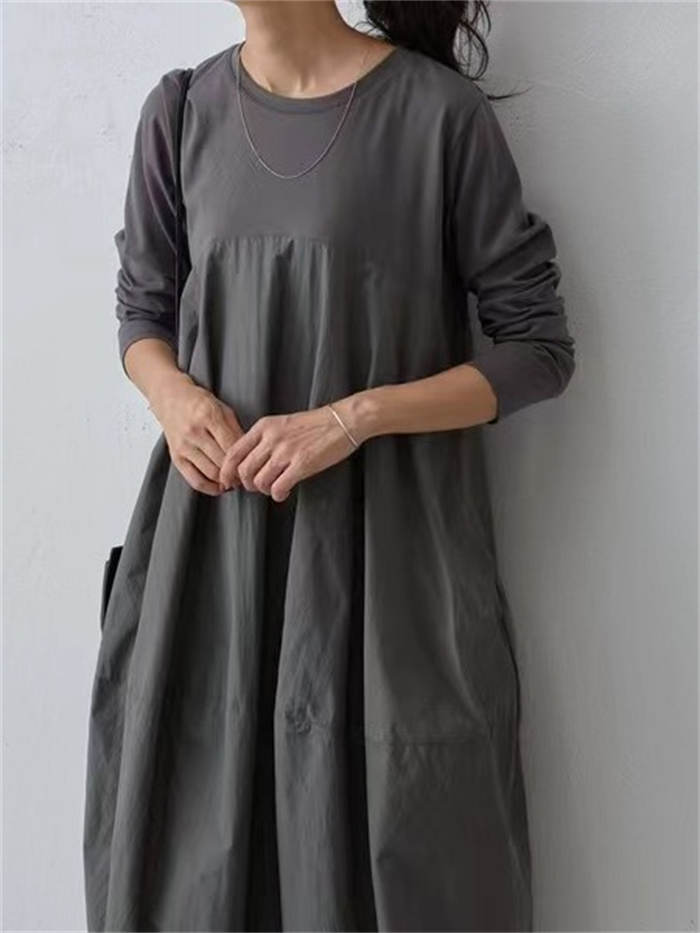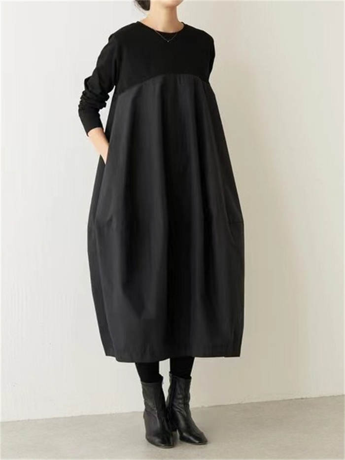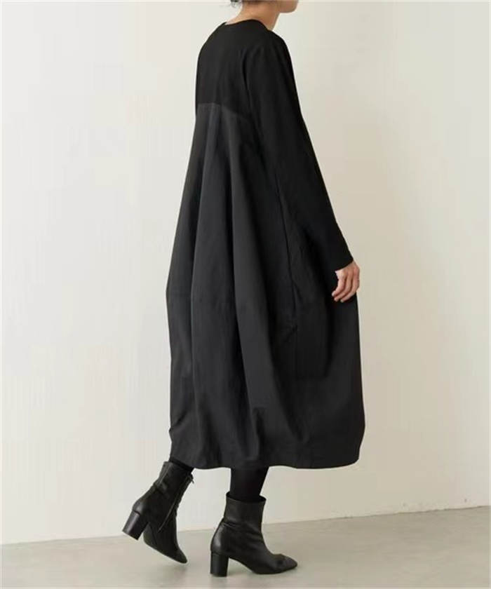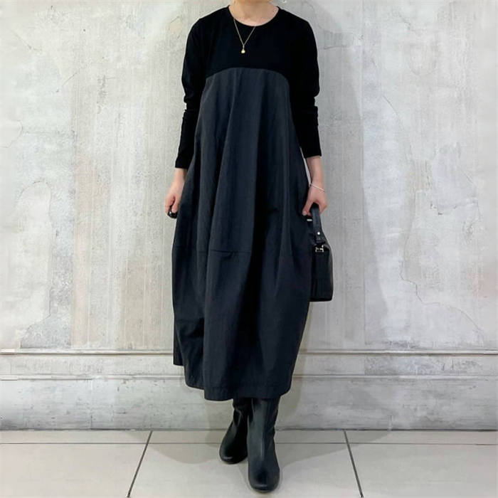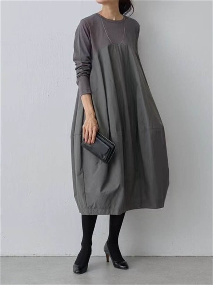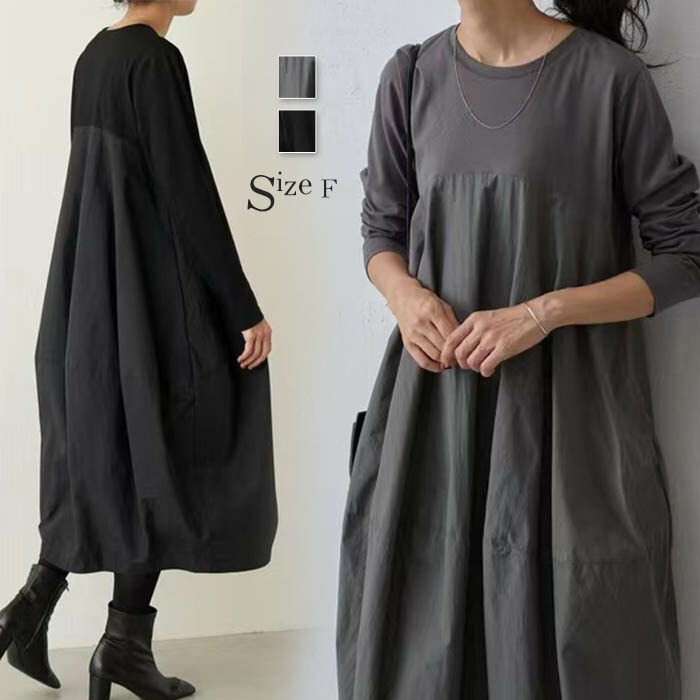 バルーン ワンピース レディース 秋 ワンピース 続々登場 グレー ブラック 紺色