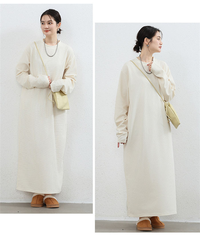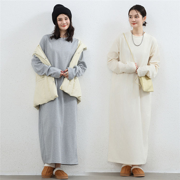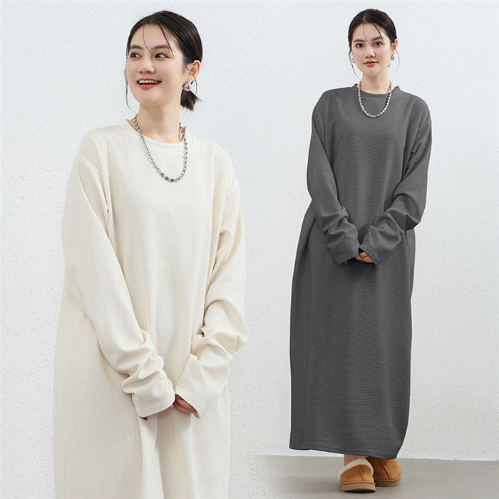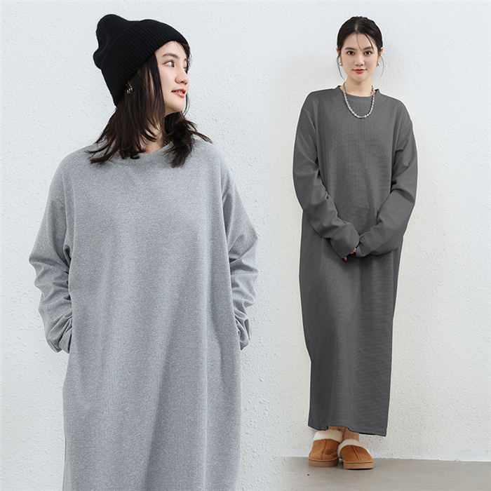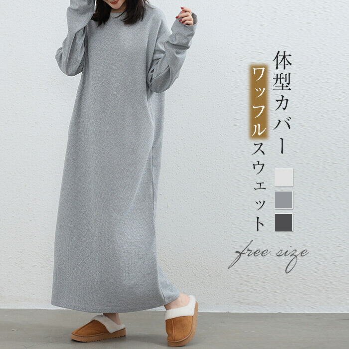スウェットワンピース ワッフル レディ ワンピース 新登場! オフホワイト ライトグレー ダークグレー