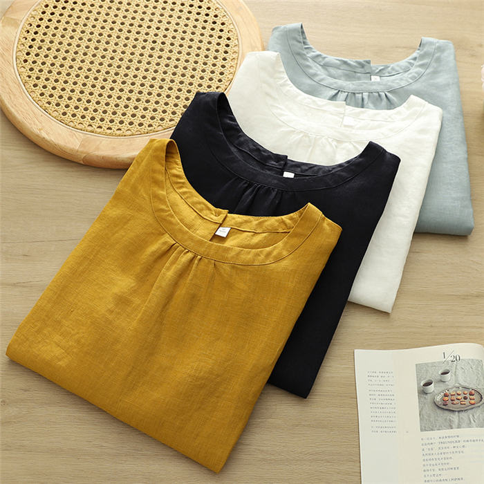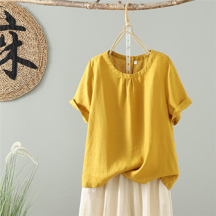 リネン100% シャツ ブラウス レデ トップス シャツ ブラウス 続々登場 黄色 白 紺色 ブルー M L