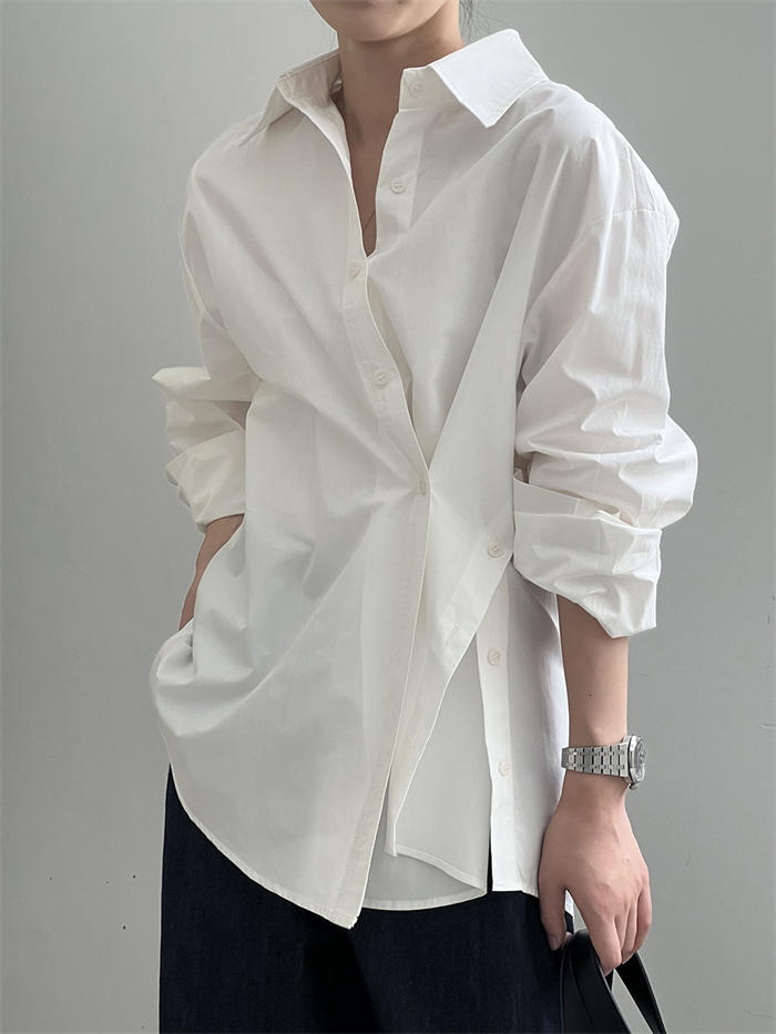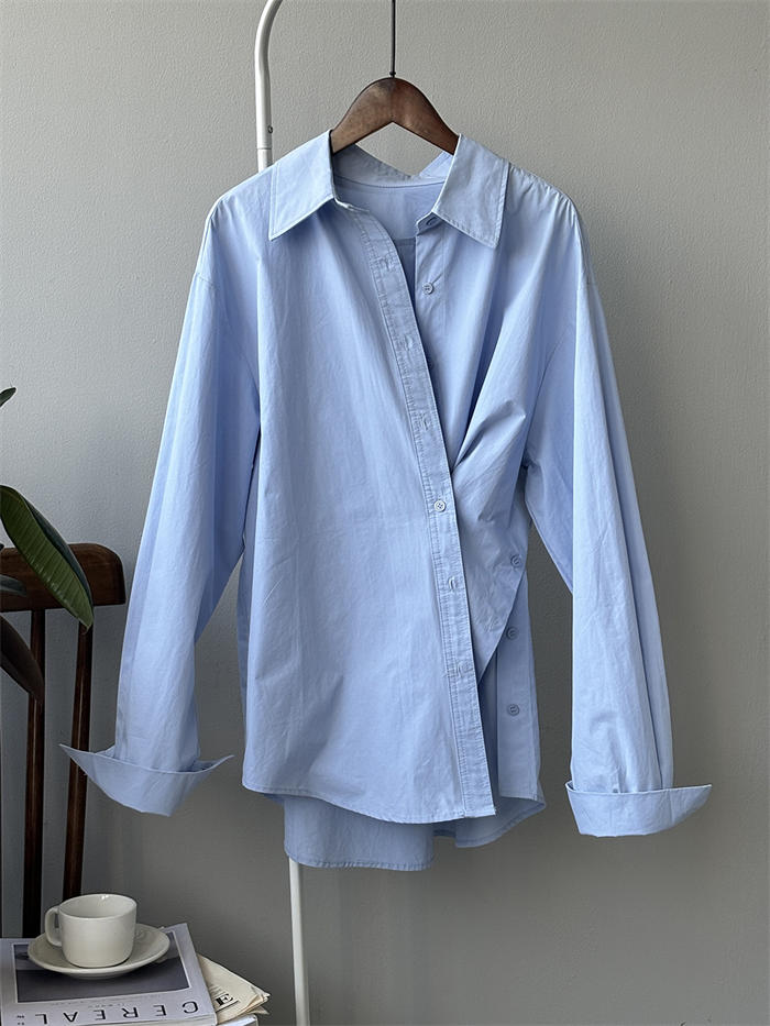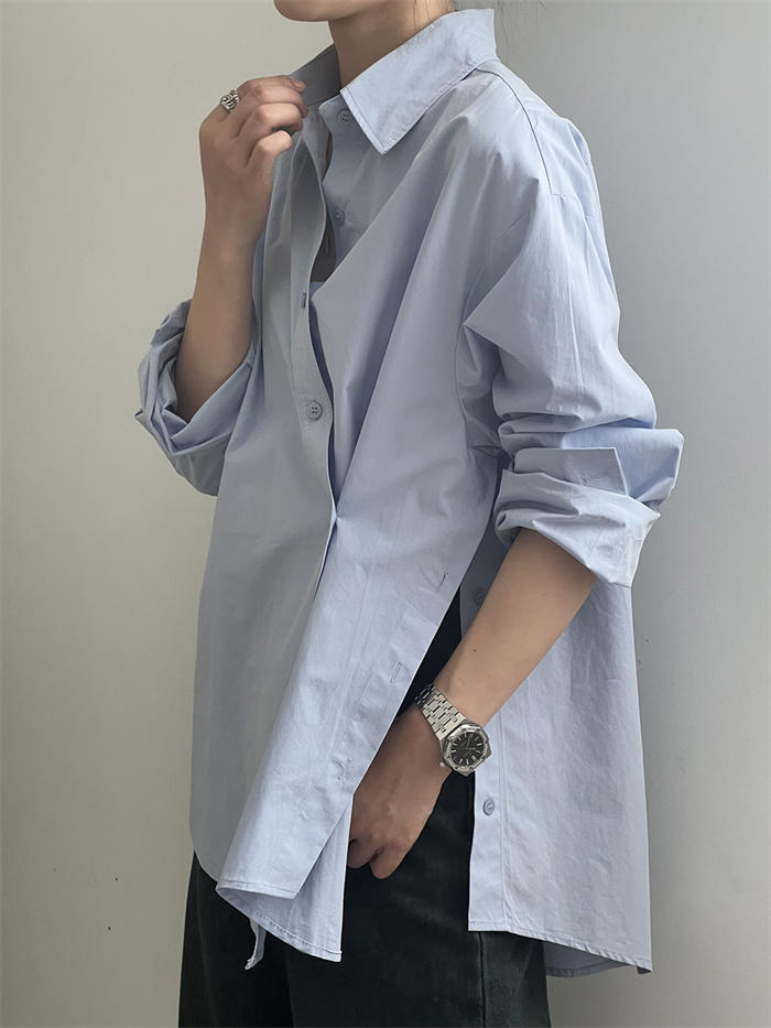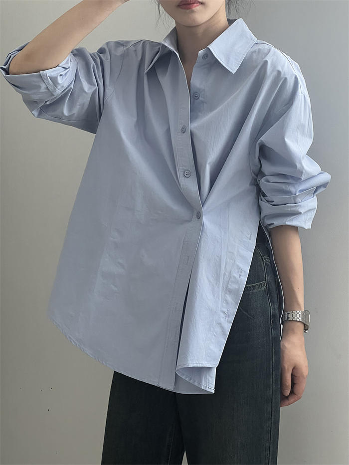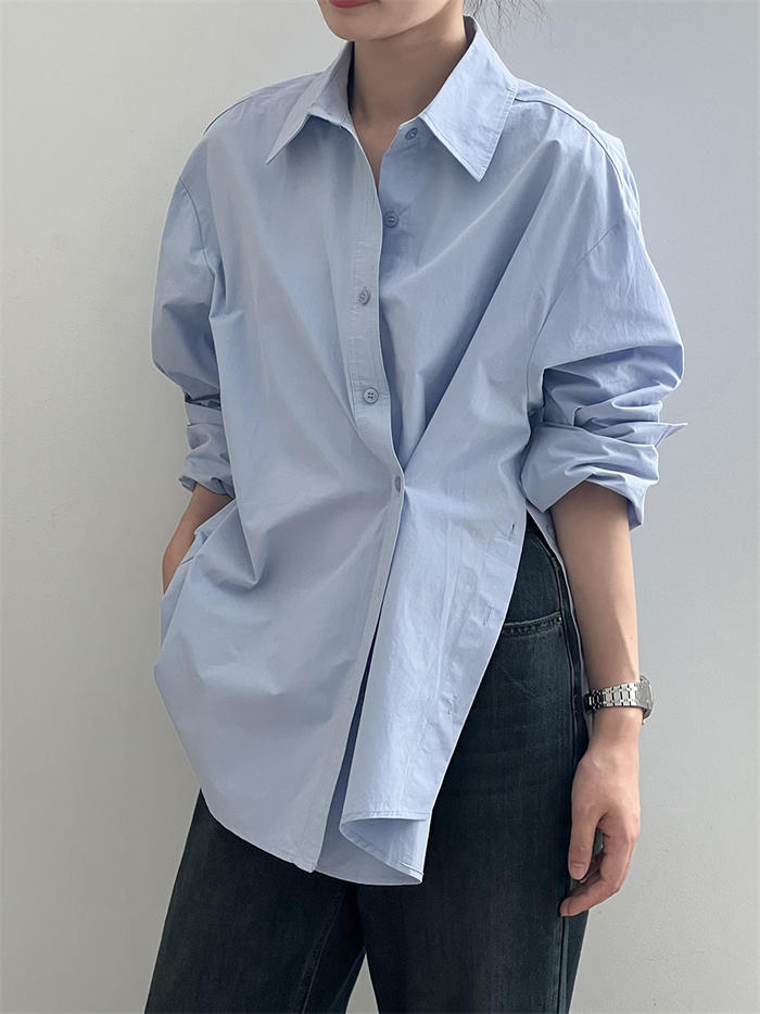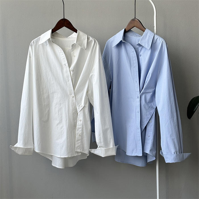 綿100% シャツ ブラウス レディー トップス シャツ ブラウス 新登場! ブルー 白 M L
