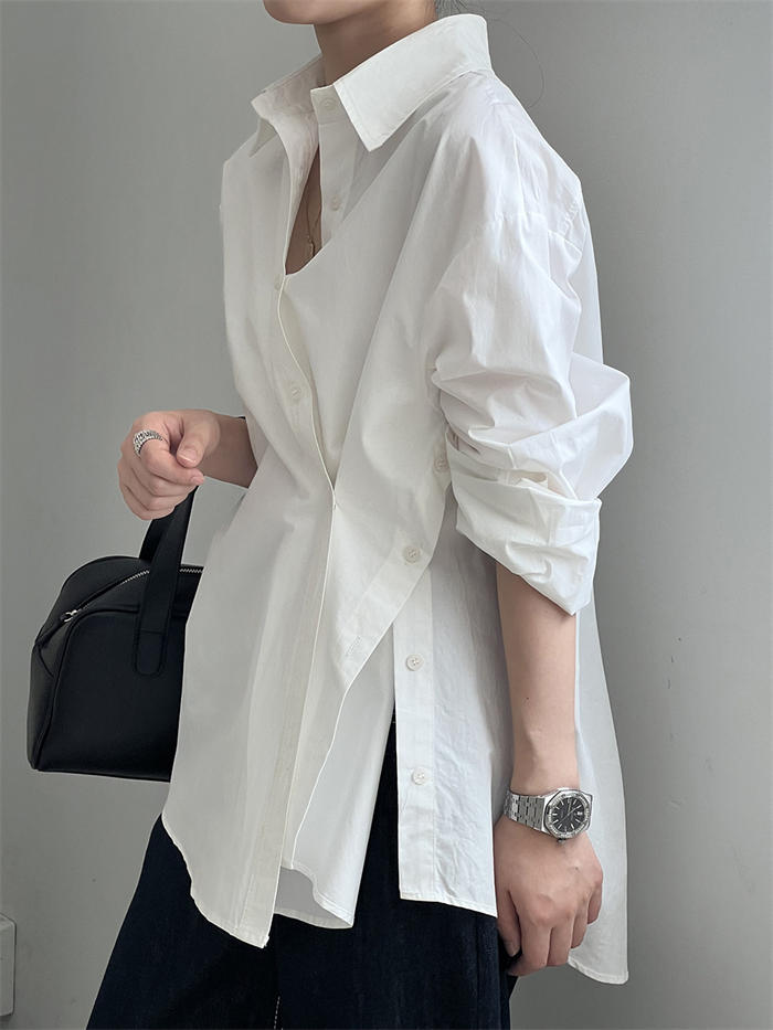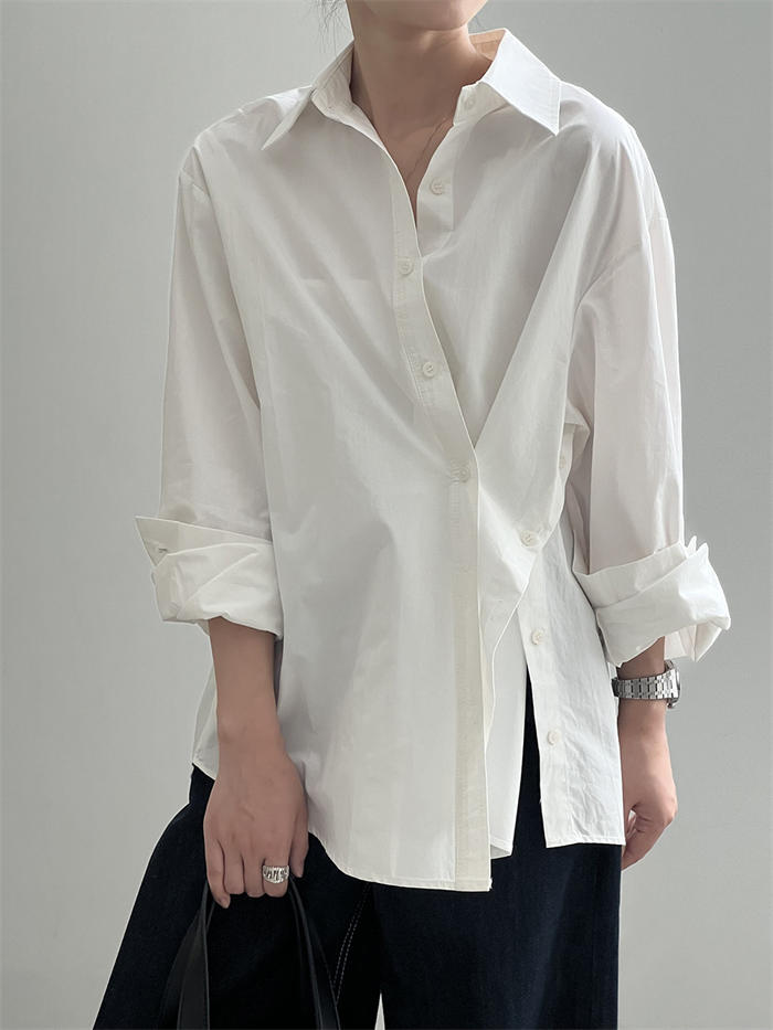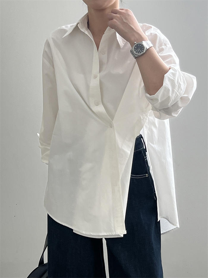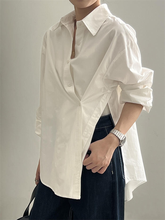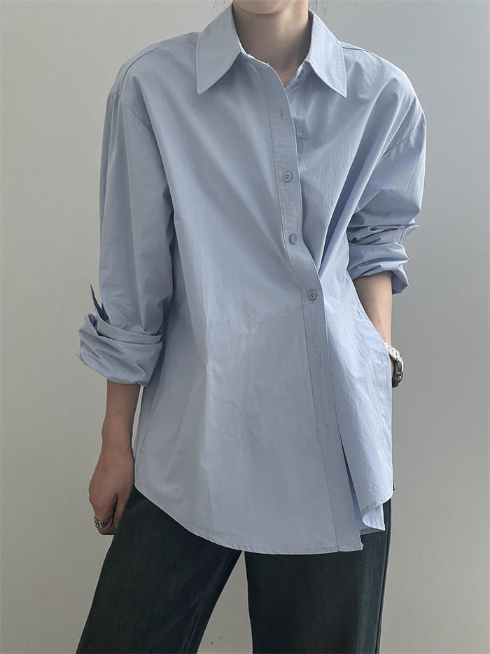 綿100% シャツ ブラウス レディー トップス シャツ ブラウス 新登場! ブルー 白 M L
