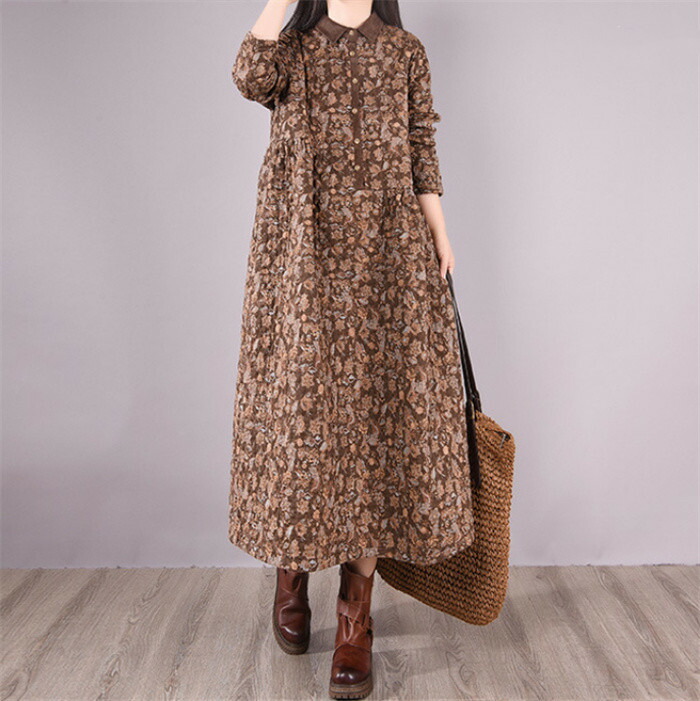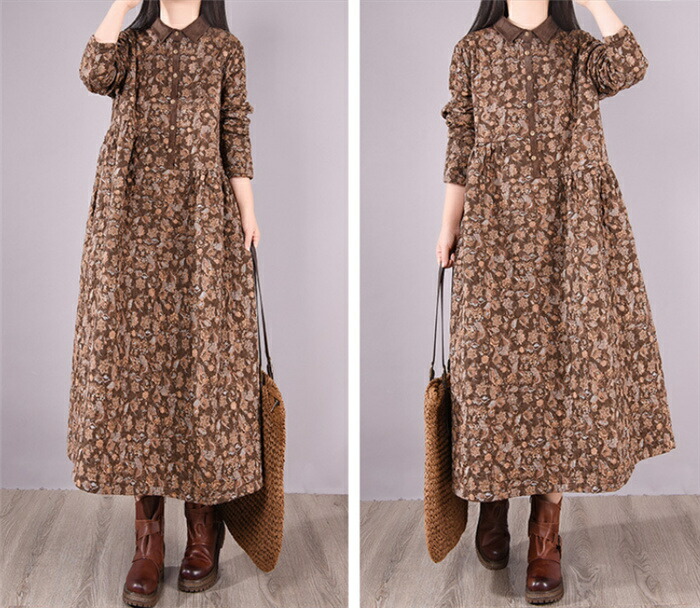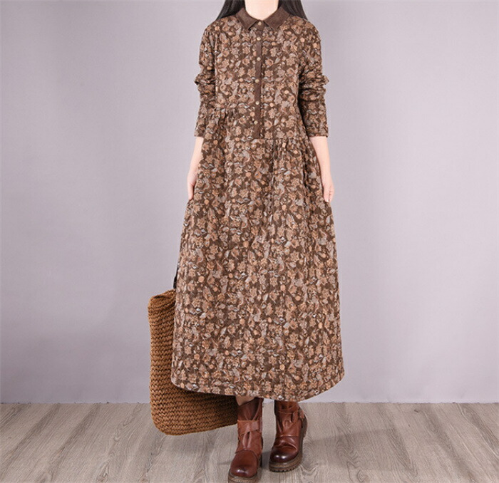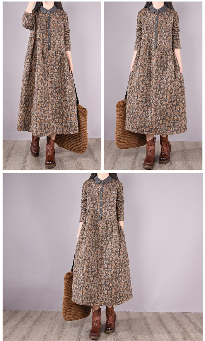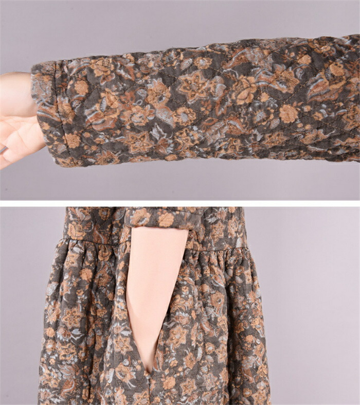 キルティング ワンピース 長袖 40代 ワンピース 新登場! グレー コーヒー色 M L XL XXL
