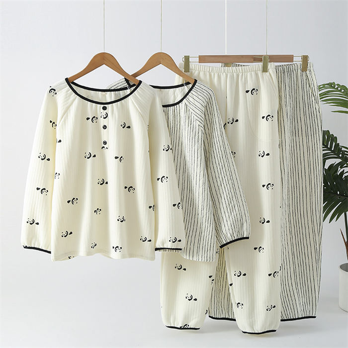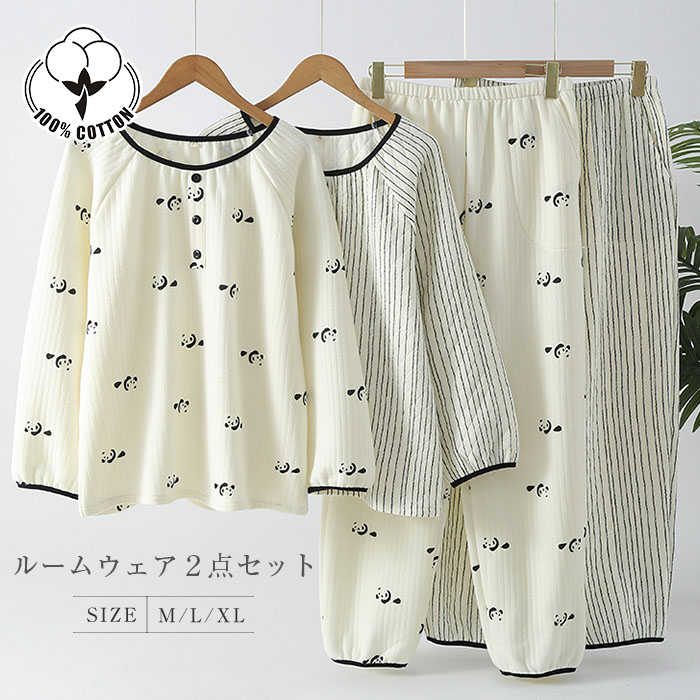 パジャマ レディース ルームウェア 春 インナー 下着 ナイトウエア 通販 パンダ柄 ストライプ M L XL