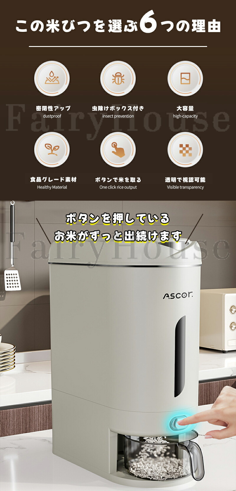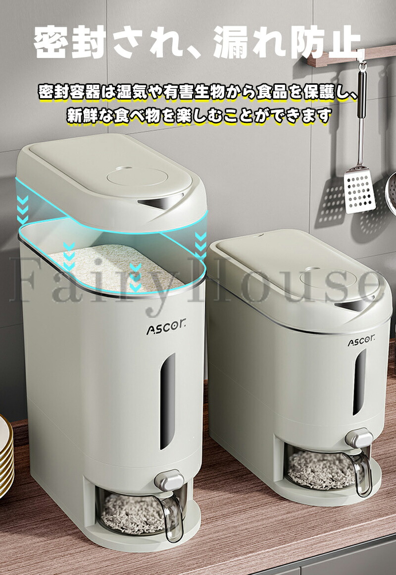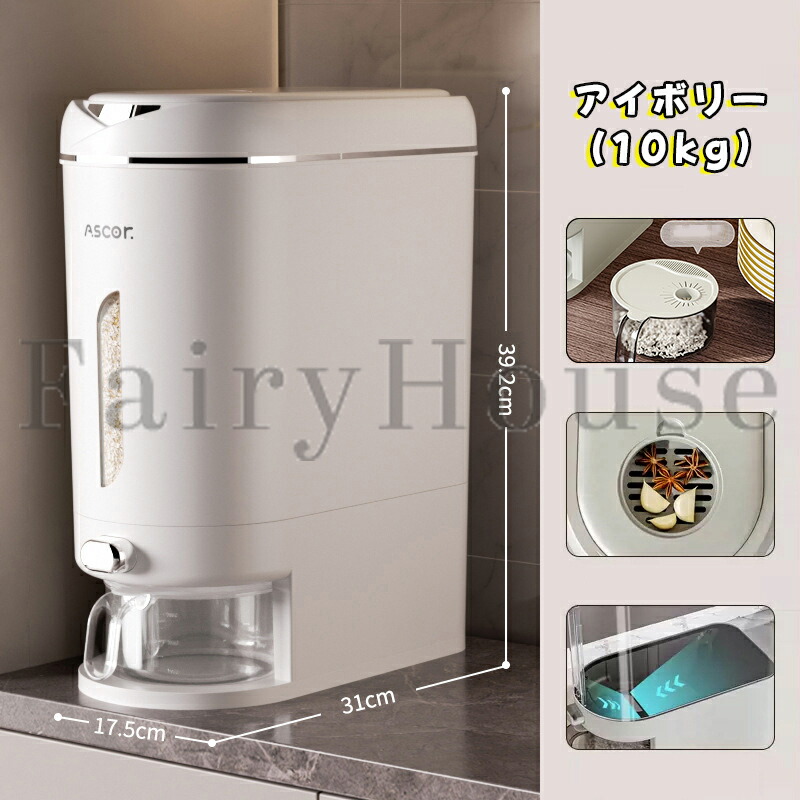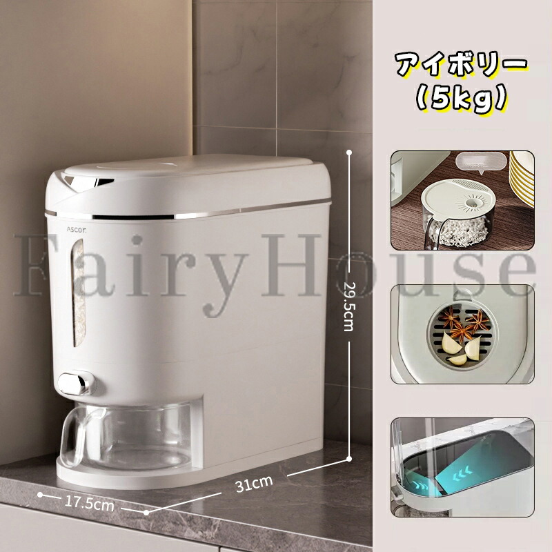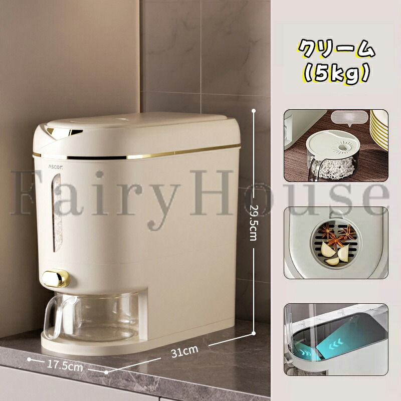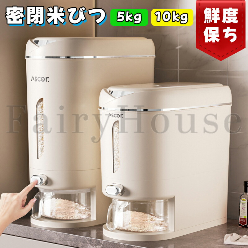 米びつ 密閉米びつ ライスストッカー キッチン用品 食器 調理器具 通販 アイボリー【5kg】 クリーム【5kg】 アイボリー【10kg】 クリーム【10kg】