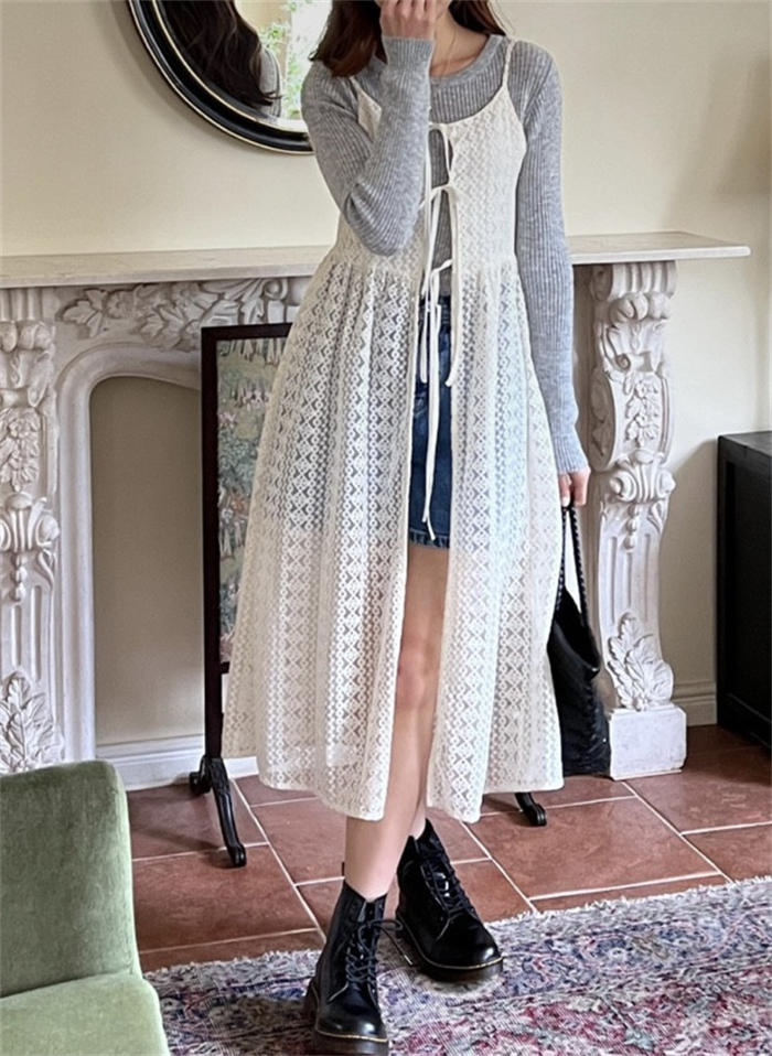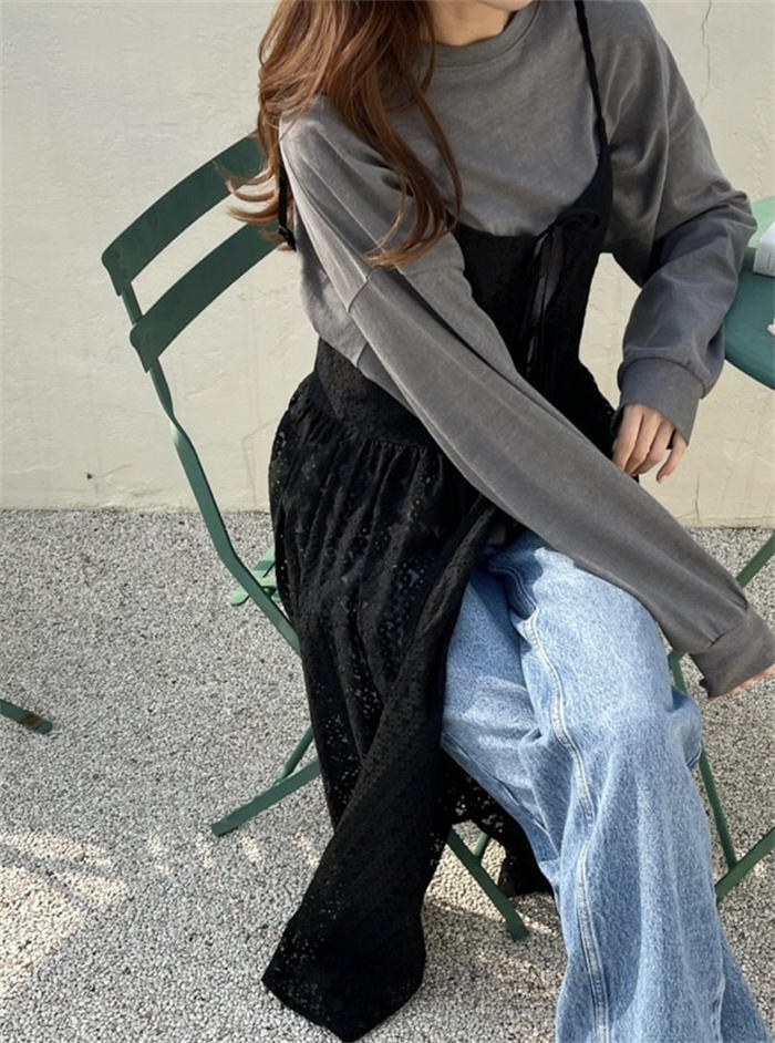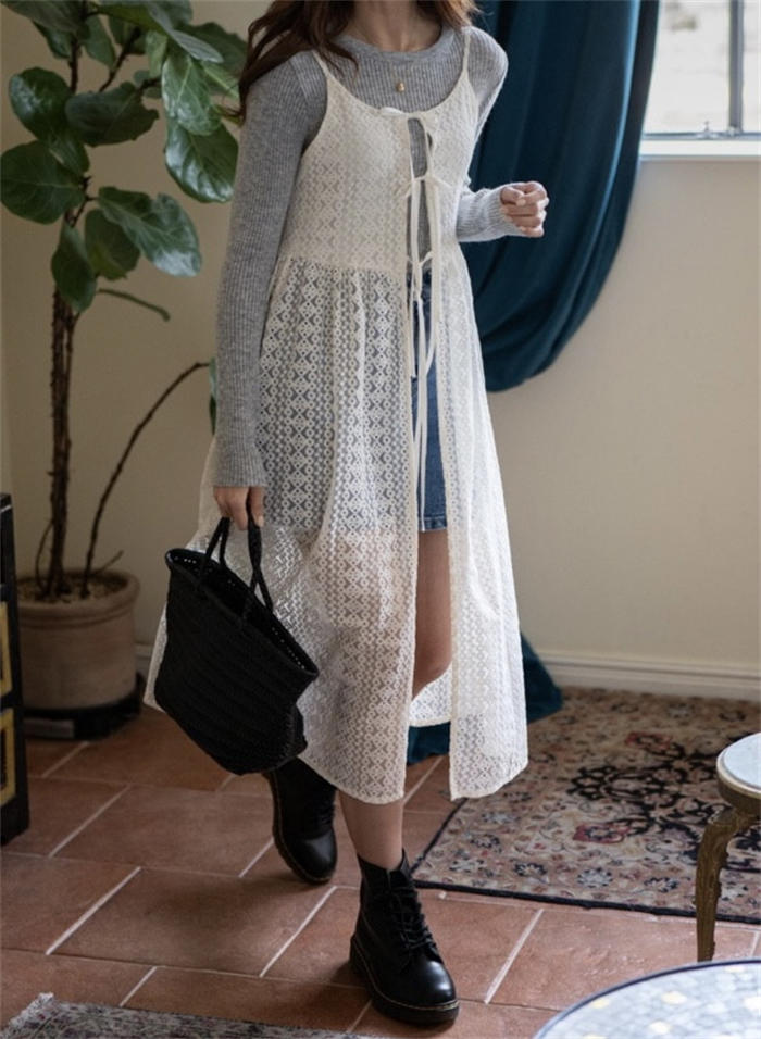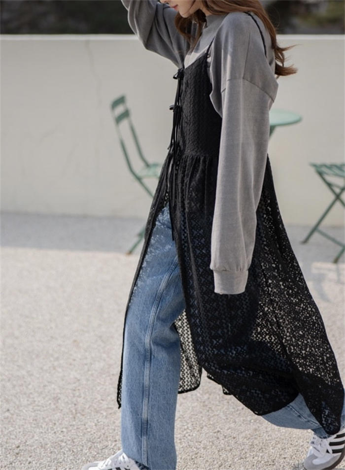 レイヤード レース キャミワンピース ワンピース 続々登場 オフホワイト ブラック