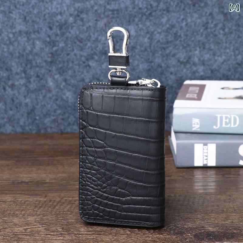 キーケース ユニセックス 男女兼用 クロコダイル柄 ワニ革風 エンボス加工 フェイクレザー PUレザー グレージュ マット 鍵入れ キーポーチ キーホルダー キーリング 大容量 コンパクト 実 多機能