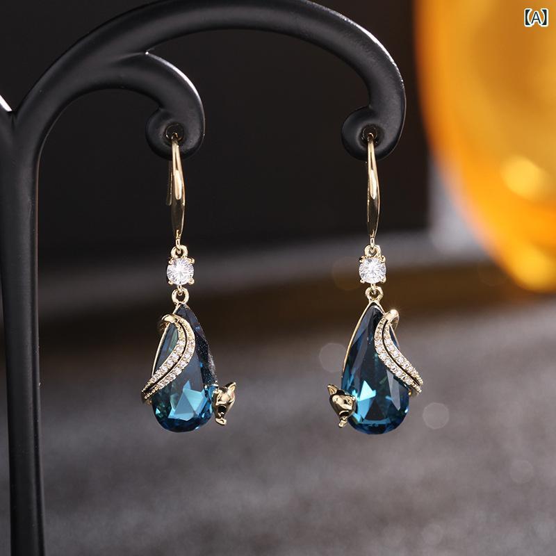 ピアス レディース レトロ アンティーク調 個性的 フォックス きつね 動物モチーフ フックピアス ブルー クリスタル ジルコニア イヤーアクセサリー 水晶