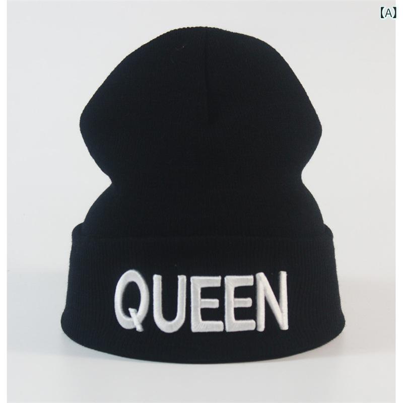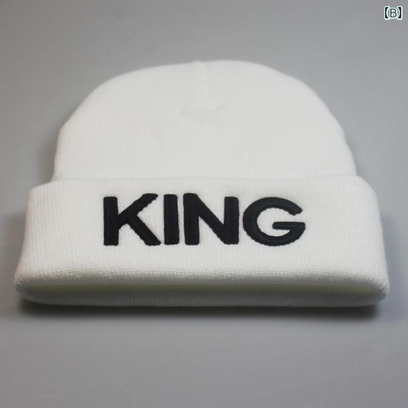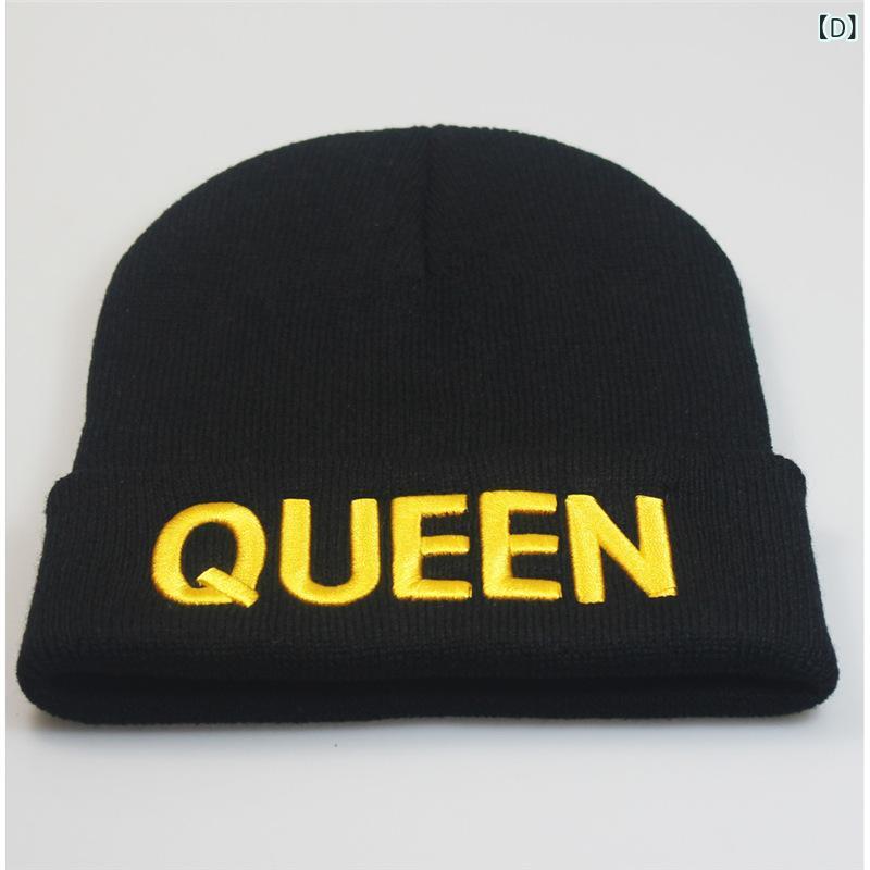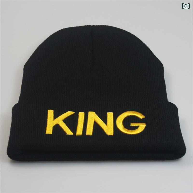 ニット帽 男女兼用 メンズ レディース バッグ 小物 ブランド雑貨 新登場! A:黒白文字クイーン B:白キング C:黒金文字キング D:黒金文字クイーン E:黒白文字キング