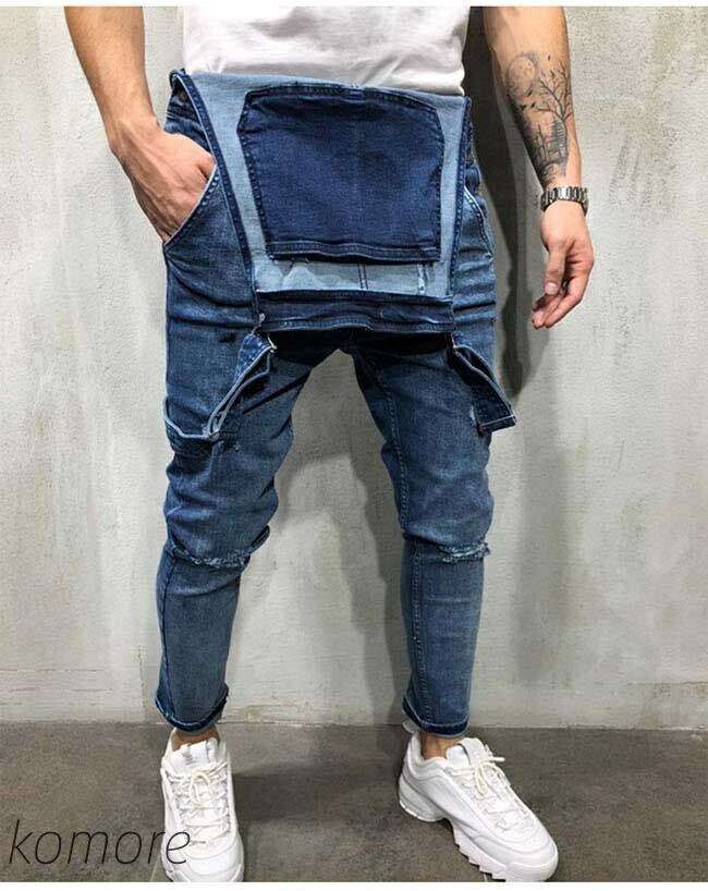 メンズ オーバーオール デニム ダメー オーバーオール 新登場! ライトブルー ブルー ブラック S M L XL 2XL 3XL