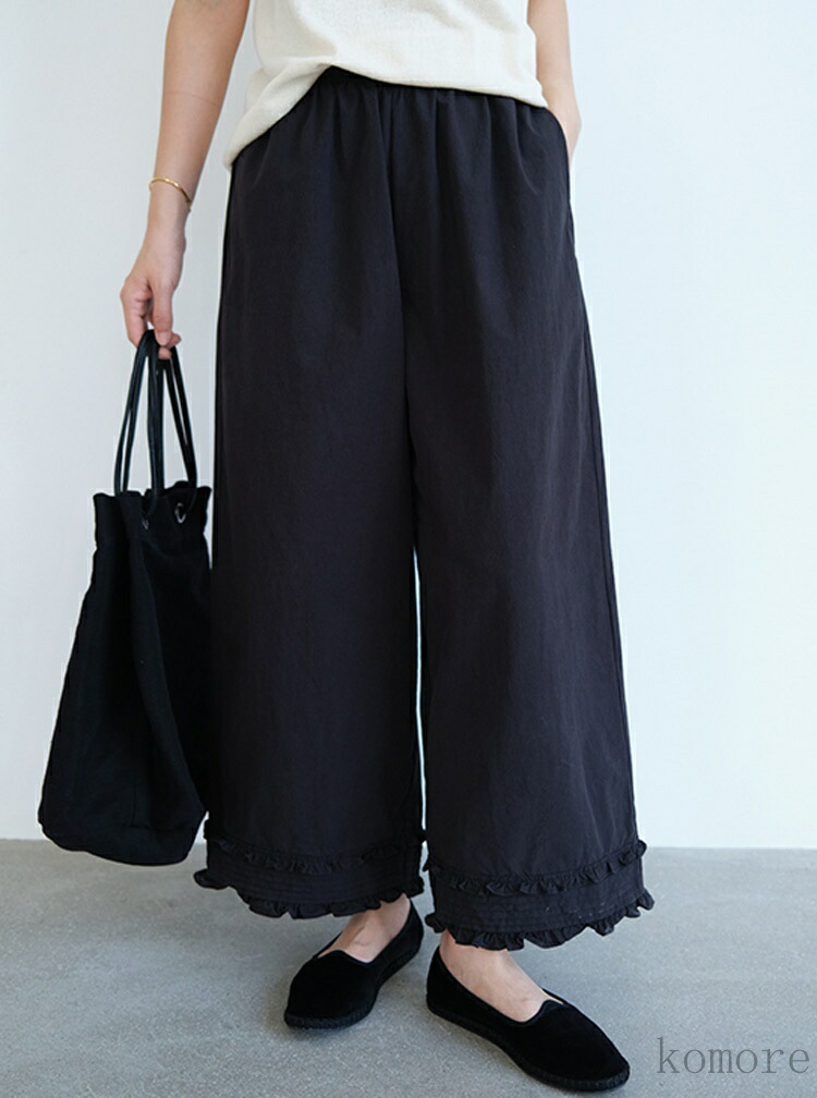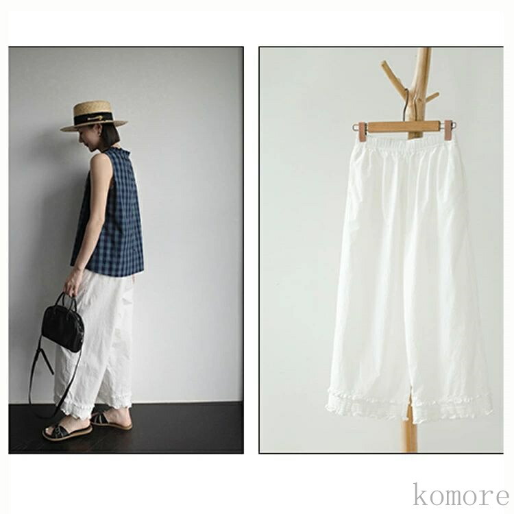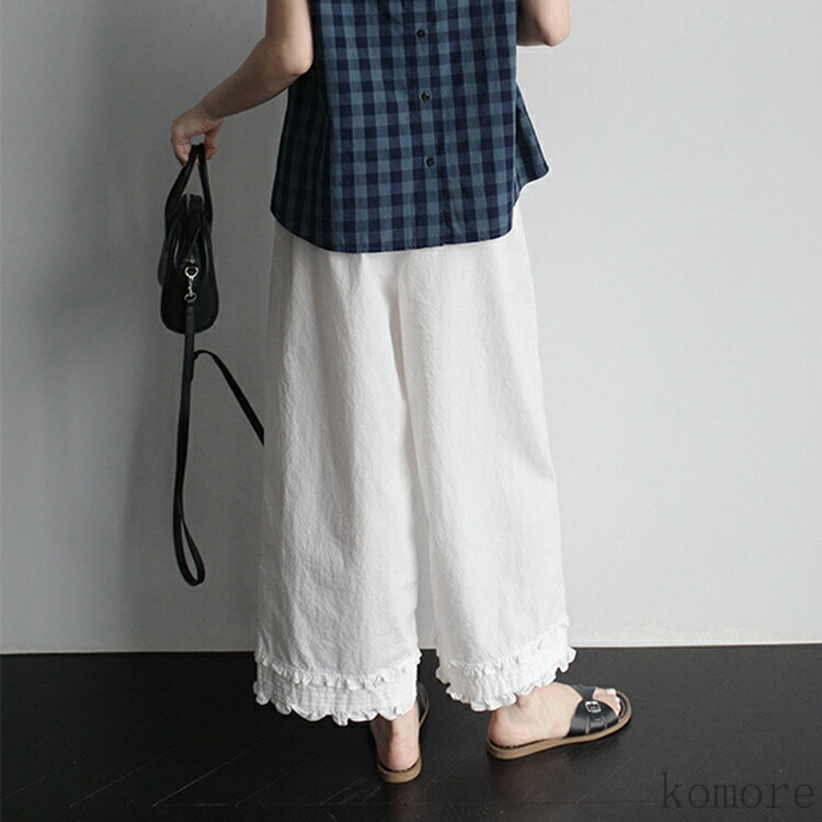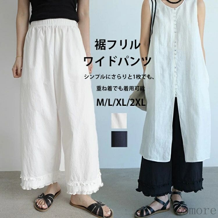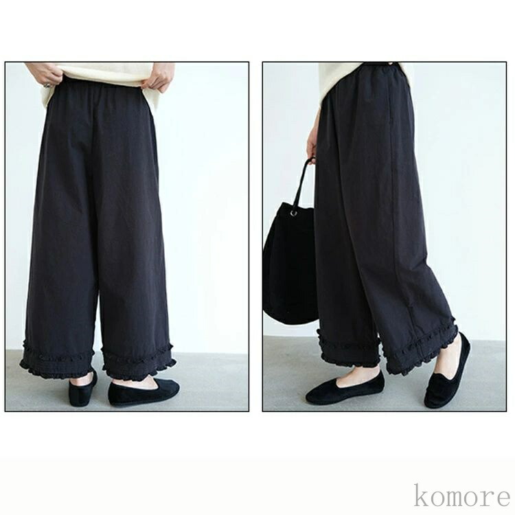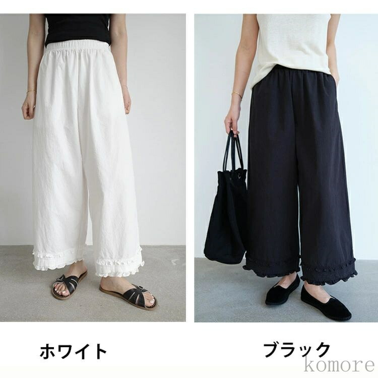 ガウチョパンツ フリル ロングパンツ レディースファッション 新登場! ホワイト ブラック M L XL 2XL