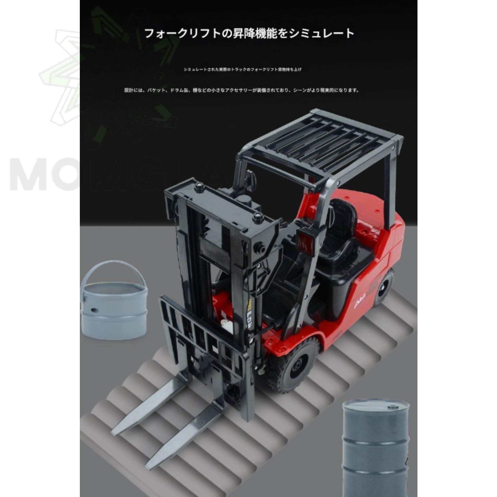 リモートコントロールフォークリフトラジコンクレーントラックフォークリフトおもちゃ、 rc フォークリフト合金材料、簡単な操作、リモートコントロール、音楽ライト、積み下ろし機能、ラジコン フォークリフト