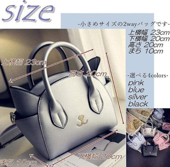 猫 ショルダーバッグ バッグ 猫耳 斜 ブラック シルバー